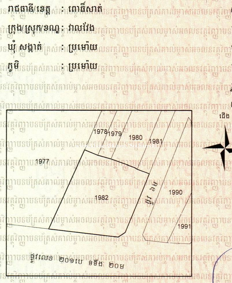 ដីផ្សារលក់បន្ទាន់ នៅតំបន់សក្តានុពលទេសចរ ទីតាំងល្អគ្មានពីរ ចំកណ្តាលទីរួមស្រុក ជិតផ្សារ អំណោយផលល្អសម្រាប់រកសុីផ្សេងៗ ផ្ទះសំណាក់ ភោជនីយដ្ឋាន និងហាងកាហ្វេ (បញ្ជាក់៖តំបន់ផ្សារ ជាប់ផ្លូវ រដ្ឋ ២០ម កាច់ជ្រុង ផ្លូវរដ្ឋ ៦ម តភ្ជាប់នឹងផ្លូវជាតិ ៥៥ ចម្ងាយប្រវែង ៥០ម) លេខក្បាលដី ១៩៨២ ប្លង់រឹង (មានរូបភ្ជាប់ជូន) លក់តម្លៃ 280,000 $ (ចរចារ) នីតិវិធីឯកសារ ជជែកគ្នាតាមការព្រមព្រៀង តម្លៃនេះត្រឹមឆ្នាំ ២០២២ លេខទំនាក់ទំនងម្ចាស់ដីផ្ទាល់៖ 0184545xxxClick To Call(Telegram) | 012563xxxClick To Call | 098359xxxClick To Call