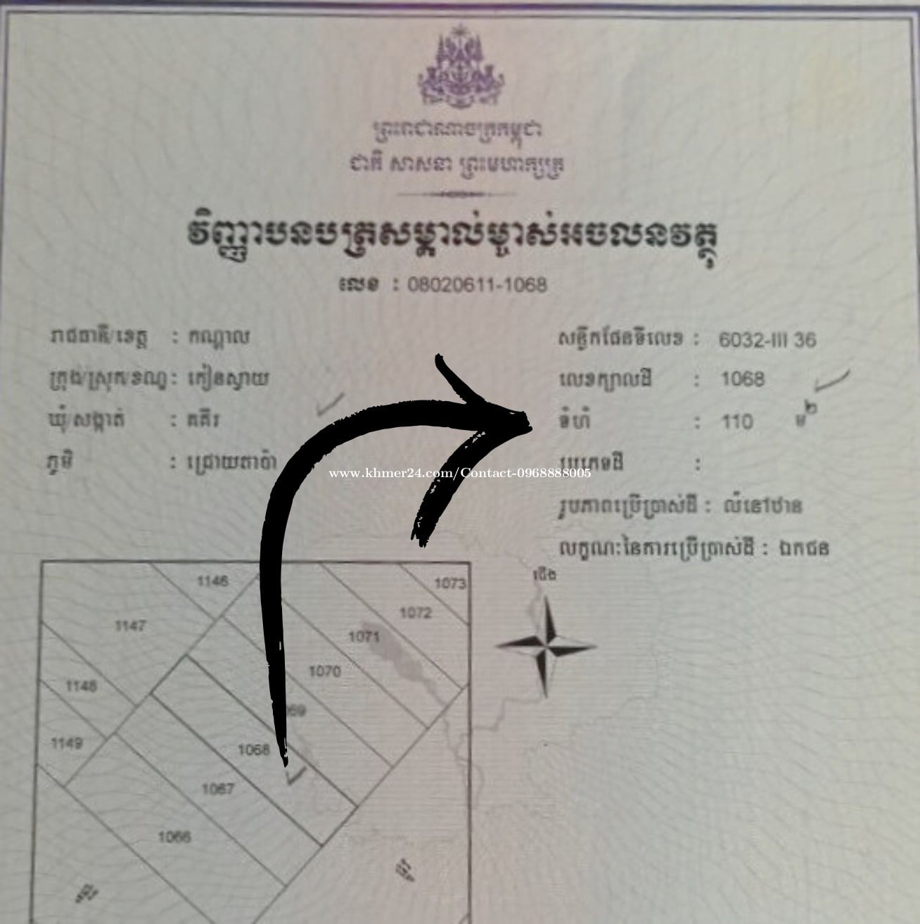 ដីលក់ទីតាំងនៅកៀនស្វាយ - ទំហំសរុប Total Land size: 110m2 - តម្លៃលក់ | Selling Price: $30000 (Negotiation) - ប្រភេទប្លង់រឹង 📞 Contact / ទំនាក់ទំនង: +8559688888005 Click Here Telegram: https://t.me/Brother0968888005