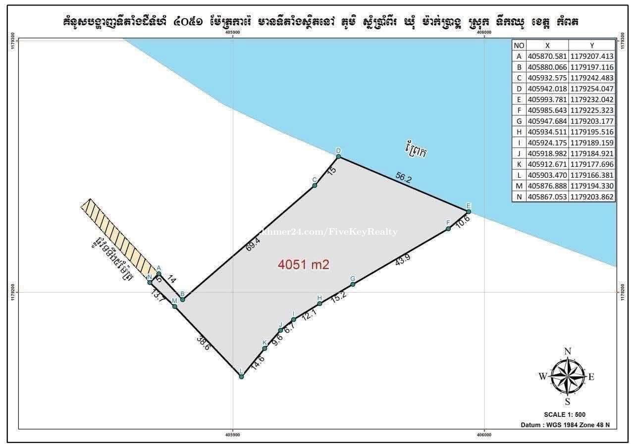 ដីលក់ជាប់ព្រែកធំ (ព្រែកទឹកឈូ) ខេត្តកំពត / Land For Sale Along Prek Thom (Prek Teuk Chhou), Kampot Province » ទំហំដីក្នុងប្លង់រឹង: 2,974m2 » ទំហំដីប្រើប្រាស់ជាក់ស្តែង: 4,051m2 ■ តម្លៃល្អ: $......? ចរចារ » ទីតាំងដីមាន ឆ្នេរខ្សាច់ស ស្រស់ស្អាត និងមានចំងាយ 300m ពីរមណីយដ្ឋាន ទឹកឈូរ។ ============== » Land size in hard title: 2,974m2 » Actual land area: 4,051m2 ■ Good price: $......? Negotiable » The land location has a beautiful white sand beach and is 300m away from the Teuk Chhour resort. ទាក់ទងមកយើងឥឡូវនេះ! | Contact Us Now! សម្រាប់ព័ត៌មានលម្អិត | For Details: ☎️ Tel: +8557860xxxClick To Call0 (Telegram/LINE/WhatsApp/Wechat) 🌐 More properties: www.fivekeyrealty.com ============== ដើម្បីទទួលបាន ព័ត៌មានអចលនទ្រព្យ ល្អៗ តម្លៃល្អៗ តម្លៃលក់បន្ទាន់ សូមចូលទៅកាន់ CHANNEL តេលេក្រាម Join US: https://t.me/joinchat/PDAU5_OLzE5iNDk1 លោកអ្នក នឹងទទួលបានព័ត៌មានល្អៗ អំពីតំលៃអចលនវត្ថុទូទាំងប្រទេសកម្ពុជា ។