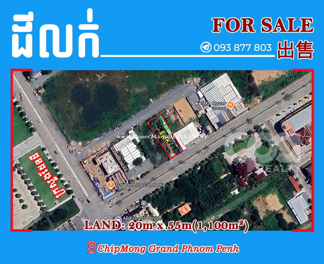 ⭕️ដីលក់ជិតក្រសួងដែនដី 🆔11545 💢ទំហំដី: 20m x 55m (1,100m2) 💢តម្លៃលក់: $1,400/m2 📍ទីតាំង៖ ផ្លូវធំមុខជីបម៉ុងហ្គ្រែនភ្នំពេញ/ក្រសួងដែនដី ☎️ 𝟎𝟗𝟑 𝟖𝟕𝟕 𝟖𝟎𝟑 𝙩𝙚𝙡𝙚𝙜𝙧𝙖𝙢: https://t.me/cparealtors 𝙬𝙚𝙘𝙝𝙖𝙩 𝙄𝘿: 𝘾𝙋𝘼_𝙍𝙚𝙖𝙡𝙩𝙮 𝙩𝙚𝙡𝙚𝙜𝙧𝙖𝙢 𝙘𝙝𝙖𝙣𝙣𝙚𝙡: https://t.me/cparealty