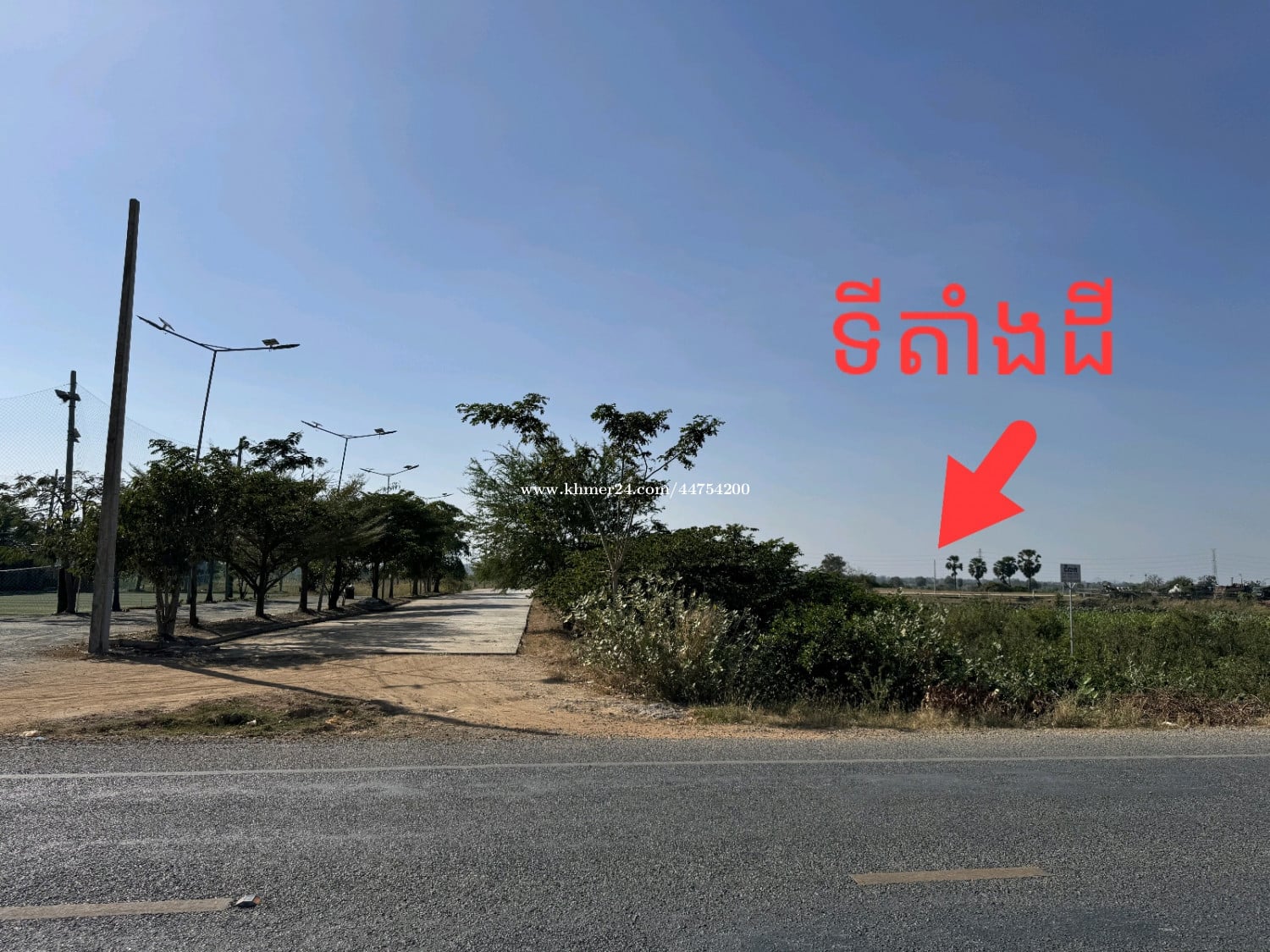 5x20 ផ្លូវកៅស៊ូទៅដល់ផ្លូវចូលទីតាំងដី មានប្រព័ន្ធលូនិងបង្គោលភ្លើង ស្ថិតទីប្រជុំជន ប្លង់រឹង
