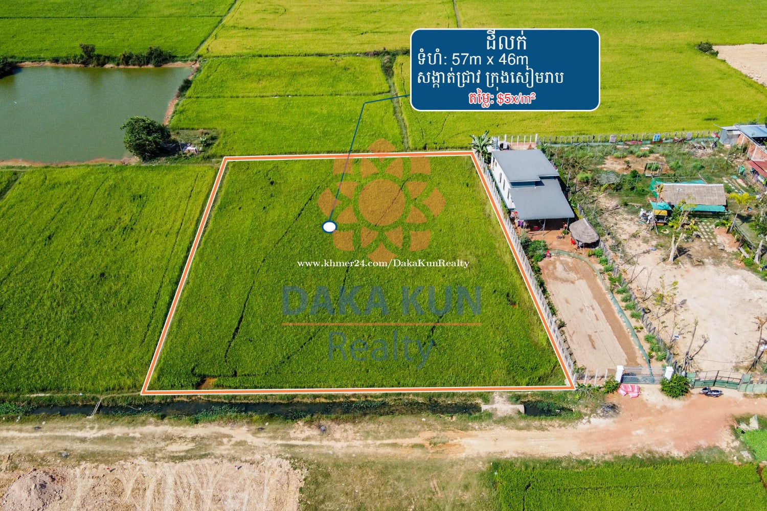 ***English Below*** ទំនាក់ទំនងមក Daka Kun Realty តាមរយៈលេខទូរស័ព្ទ 089899xxxClick To Call / 012390xxxClick To Call ( WhatsApp/Telegram ) ឬផ្ញើសារមកកាន់អ៉ីមែល ៖ inq****@dakakunrealty.comClick To Sent Email លេខកូត៖ DL1242 តម្លៃ៖ 57 ដុល្លារ ក្នុងមួយម៉ែត្រការ៉េ (ចរចា) • ទំហំដី៖ 57ម x 46ម (2,622 ម៉ែត្រការ៉េ) • ជាប់ផ្លូវ8m • ទីតាំង៖ ស្ថិតនៅក្នុងសង្កាត់ជ្រាប, ក្រុងសៀមរាប —------------------------------------------------------------------------ Contact Daka Kun Realty at 089899xxxClick To Call/012390xxxClick To Call ( WhatsApp & Telegram) or Email: inq****@dakakunrealty.comClick To Sent Email Property ID: DL1242 Price: USD 57 per sqm (Negotiable) • Land Size: 57m x 46m (2,622 sqm) • Road 8m • Located in Sangkat Chreav, Siem Reap City More option: www.dakakunrealty.com Telegram Channel —-> https://t.me/dakakunrealty ភ្នាក់ងារអចលនវត្ថុ: យឺន សំអាត អត្តលេខ: R-21-381-01
