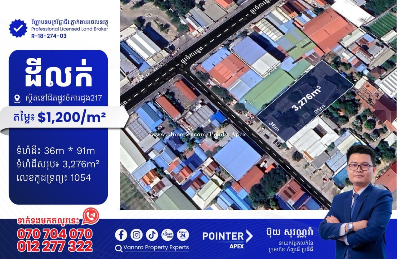 ដីលក់នៅជិតផ្លូវចំការដូង217 សម្រាប់លក់: $1,200/m² ឬ$3,931,200 ទំហំដី: 36m x 91m ទំហំដីសរុប: 3,276m² 🔐លេខកូដអចលនវត្ថុ៖ 1054 ស្ថិតនៅជិតផ្លូវ217 សង្កាត់ដង្កោ ខណ្ឌដង្កោ ភ្នំពេញ ——————————— ទាក់ទងមកឥលូវនេះ៖ Call: 070704xxxClick To Call / 012277xxxClick To Call Telegram: https://t.me/vannraaa 微信号: vannra-experts - Channel: https://t.me/vannrapropertyexperts - Tiktok: https://www.tiktok.com/@vannra_property_experts - Facebook: https://www.facebook.com/vannra.phnompenh.property/
