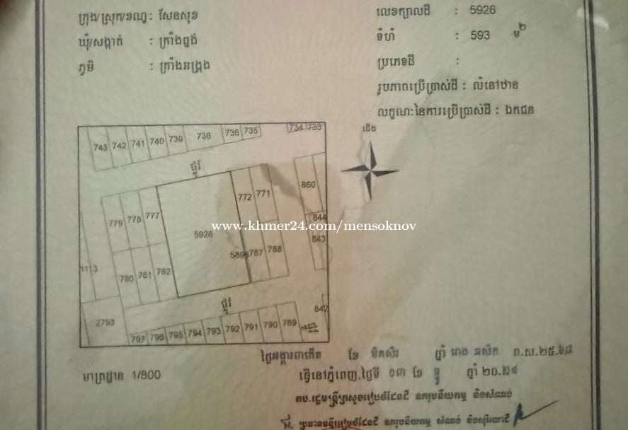 ✔️ដីលក់ជិតផ្សារឈូកមាសផ្លូវមុខ/ក្រោយ 📍សង្កាត់ក្រាំងធ្នង់ ខណ្ឌសែនសុខ ភ្នំពេញ - - - - - - - - - - - - - - - - - - - - - - - ទំហំ 20m x 30m(593m²) តម្លៃ $290,000 ចរចា ប្លង់រឹង - - - - - - - - - - - - - - - - - - - - - - - ផ្លូវ8m&8m អាចសាងសង់វីឡា ឬសង់ជាឃ្លាំងក៏បាន. . . ។ - - - - - - - - - - - - - - - - - - - - - - - ព័ត៍មានដីផ្សេងៗទៀត៖ 🔗 https://t.me/cityrealtys 📲Telegram https://t.me/menneou - - - - - - - - - - - - - - - - - - - - - - - Tel: 012696xxxClick To Call (Cellcard) 070696xxxClick To Call (Smart)