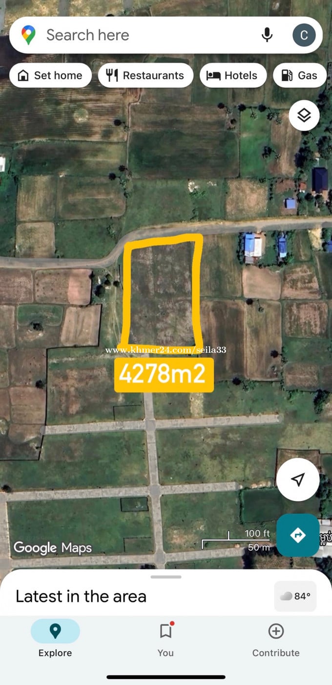 ដីនៅប្រសិត តម្លៃ $248,000 (ចរចាបាន) ទំហំដី ក្បាល 51ម x បណ្ដោយ 84ម = 4278 ម៉ែត្រការ៉េ ដីបែរទិសខាងជើង ស្ថិតលើផ្លូវ 16ម ទីតាំងនៅភូមិត្រពាំងស្មាច់ ឃុំម្កាក់ ស្រុកអង្គស្នួល ខេត្តកណ្តាល ក្បែរផ្លូវ130 ឬហៅផ្លូវ42 លេខទំនាក់ទំនង 098385xxxClick To Call / 012655xxxClick To Call Telegram
