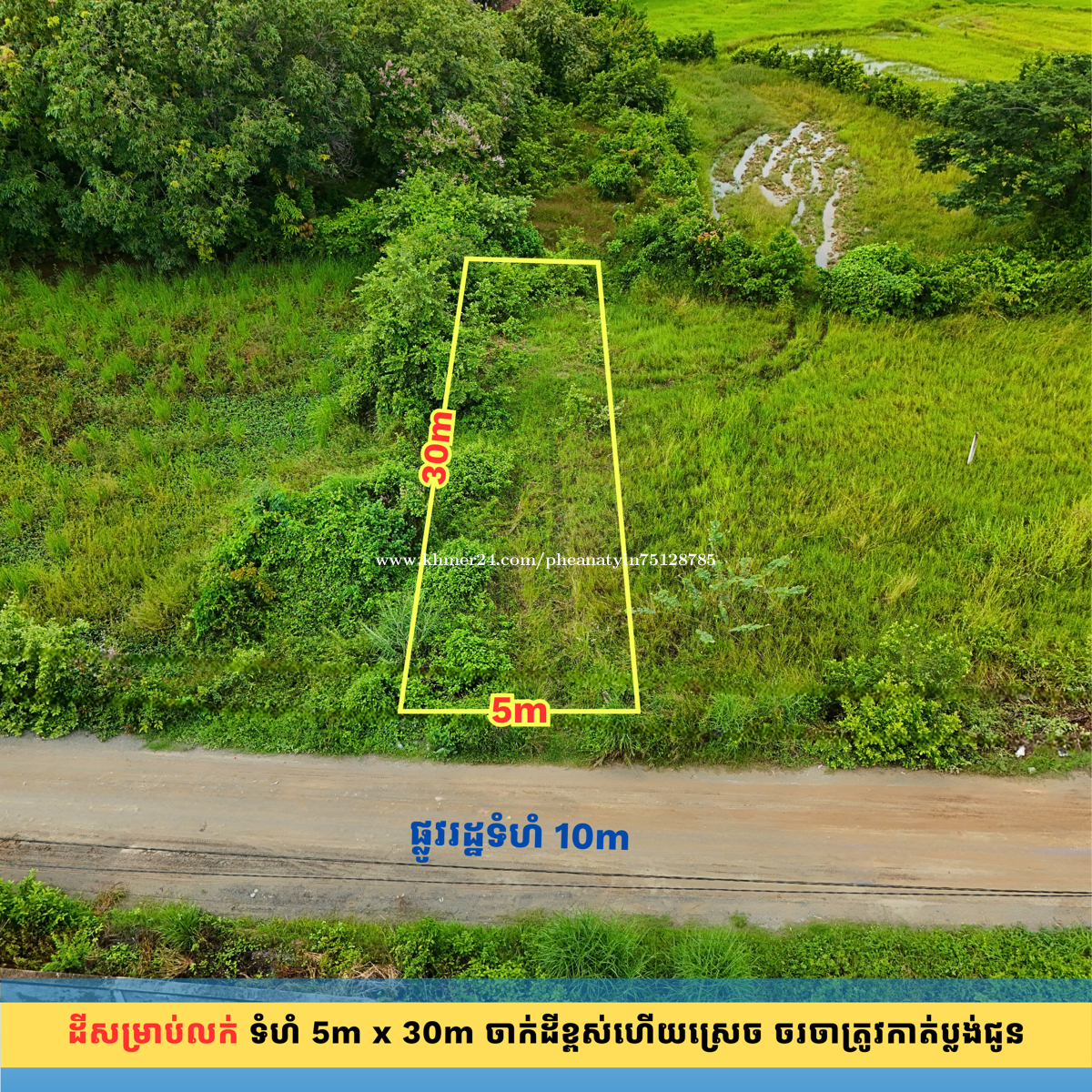 ដីលក់ទល់មុខវត្តអន្លង់គគីរ * តម្លៃលក់ | Price: $11,500 ចរចា . ទំហំ | Size : 5m x 30m = 150m² . ទំហំផ្លូវរដ្ឋ 10m ចេញចូលមិនទាល់ (មានប្រព័ន្ធទឹកភ្លើង និងលូ) * កម្មសិទ្ធិប្លង់ (ចរចារត្រូវកាត់ប្លង់ជូន) 📍ទីតាំង៖ ភូមិឬស្សី ឃុំព្រះនិព្ធាន ស្រុកគងពិសី ខេត្តកំពង់ស្ពឺ។ 💁 សូមទំនាក់ទំនង ៖ ☎️ (Cellcard): 0762222xxxClick To Call ☎️ (Smart) : 0967985xxxClick To Call ☎️ (Metfone): 0887905xxxClick To Call ↗️Telegram: https://t.me/Yin_Pheanat666 + យើងខ្ញុំមានសេវាធនាគារល្អៗជូន បើសិនជាអតិថិជនត្រូវការ។🙏