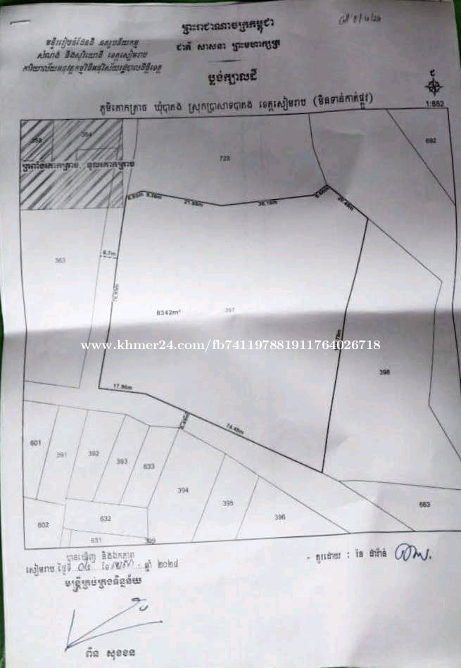 ដីលក់91mx74m={8342m} លក់តម្លៃ15$/1ការ៉េចរចាបាន ដីជាប់ផ្លូវ8ម មុខ ផ្លូវចំហៀង ដីបង្កាន់ចាំទទូលប្លងរឹង ទីតាំងដី ភូមិគោគត្រាច.ឃុំបាគង.ស្រុកបាគង.ខេត្ដសៀមរាប។ សូមទំនាក់ទំនងតាមលេខតេលេក្រាម070747xxxClick To Call/0977940xxxClick To Call