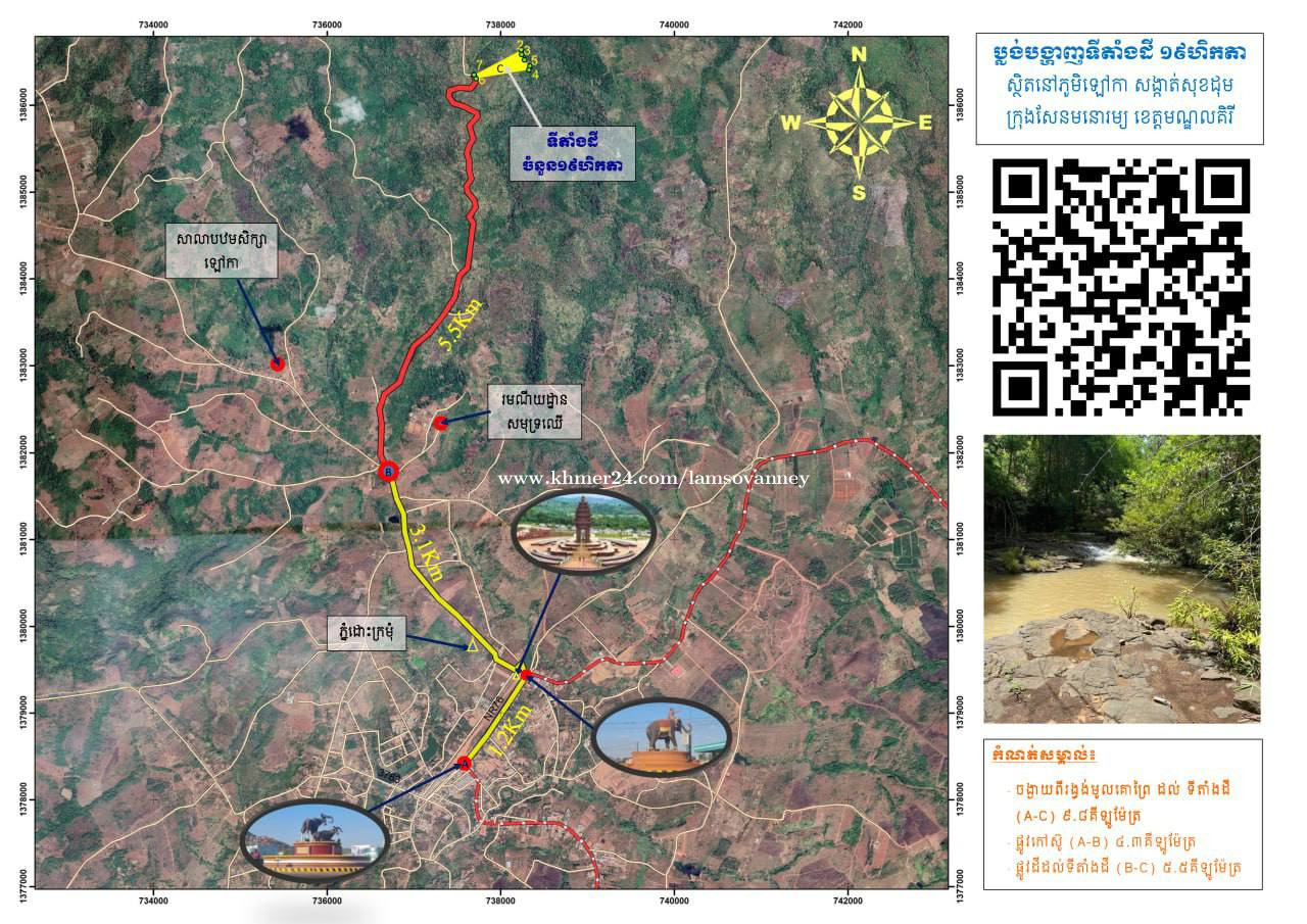 ដីលក់បន្ទាន់តំលៃ 1ហិកតា =7,500$ មាន 19ហិកតា នៅភូមិឡៅកា ម្ចាស់ផ្ទាល់។ 10km ពីរង្វង់មូលគោព្រៃ។ 0978628xxxClick To Call