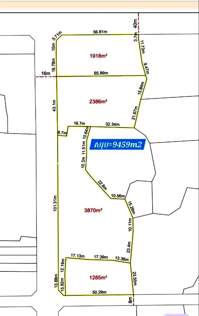 ដីលក់បន្ទាន់ កែង ៖ នៅជិតបុរីបុស្បាផ្លូវជាតិលេខ3 សង្កាត់ពងទឹក ខណ្ឌដង្កោ ភ្នំពេញ 👉 ទំហំដី : 9,459sqm 👉 ផ្លូវ : គម្រោងផ្លូវរដ្ឋ 40m កែងផ្លូវ 16m 👉 តម្លៃលក់ : $99/sqm ចចារ 👉 ទីតាំងដី : ជាតំបន់អភិវឌ្ឍន៍ ឃ្លាំង រោងចក្រ និងការវិនិយោគទៅថ្ងៃអនាគត ។ ---------------------------- Urgent land for sale: Near Borey, Sangkat Pong Teuk, Khan Dangkor, Phnom Penh ▪️ Land size: 9,459 sqm ▪️ Road: State road 40m, corner road 16m ▪️ Selling price 99$/sqm ▪️ Land location: Development area, warehouse and future. 📲 078990xxxClick To Call | 015990xxxClick To Call | 031 6 990699 📨 Telegram : http://t.me/Soriya2001 🆑 Channel : https://t.me/panhchsak2001 📩 ទីតាំងផ្សេងលក់បន្ទាន់ Link : https://t.me/panhchsak001