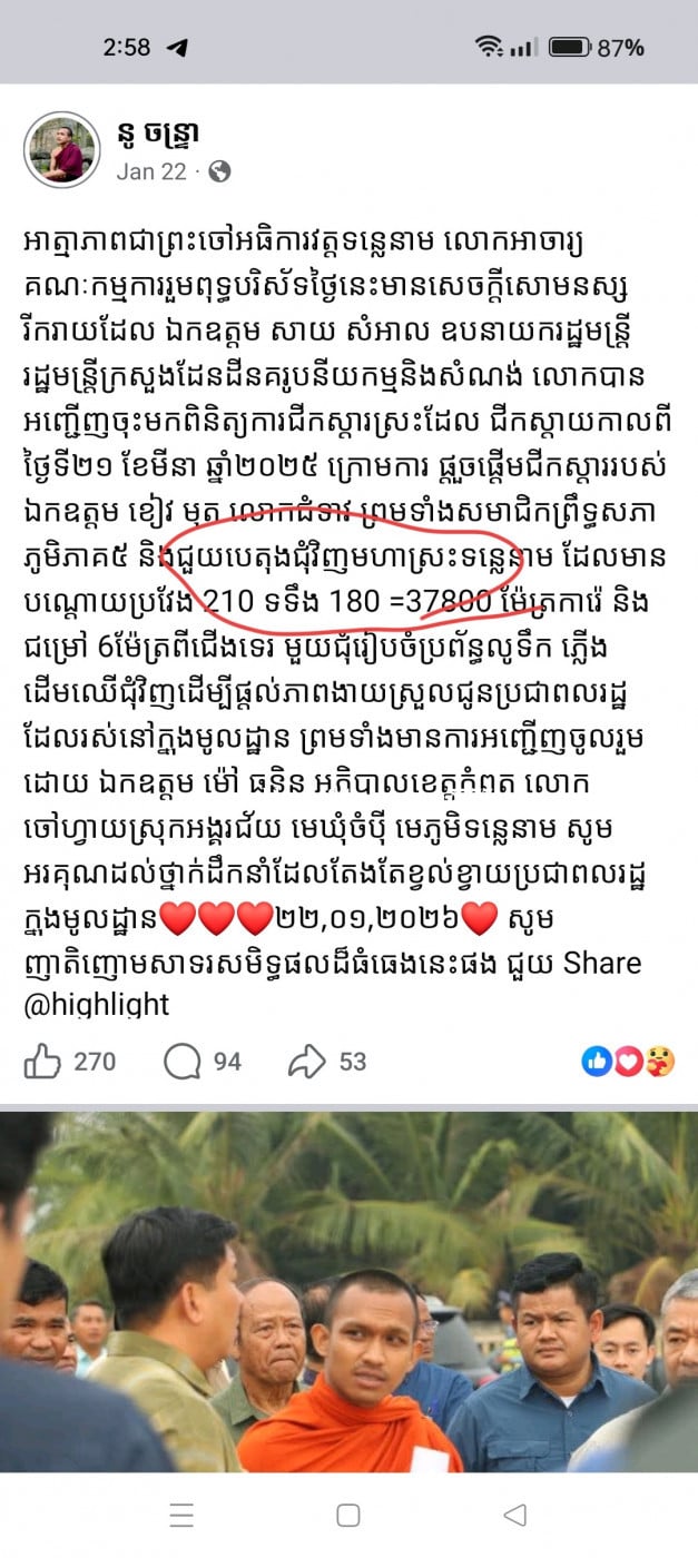 ដីស្អាតតម្លៃក្រោមទីផ្សារ អាចសាងសង់ផ្ទះត្រចៀកកាំ ឬទិញទុកយកចំនេញ។ ចុះពីផ្លូវជាតិតែជាង២០០មែត្រ នៅជិតស្រះទឹករដ្ឋទហំជិត៤ហាតា ជំរៅ៦មែត្រ នឹងមានផ្លូវបេតុងជំវិញ។ ជិតវត្តអារាម សាលារៀន នឹងមានផ្ទះប្រជាពលរដ្ឋរស់នៅជំវិញ។