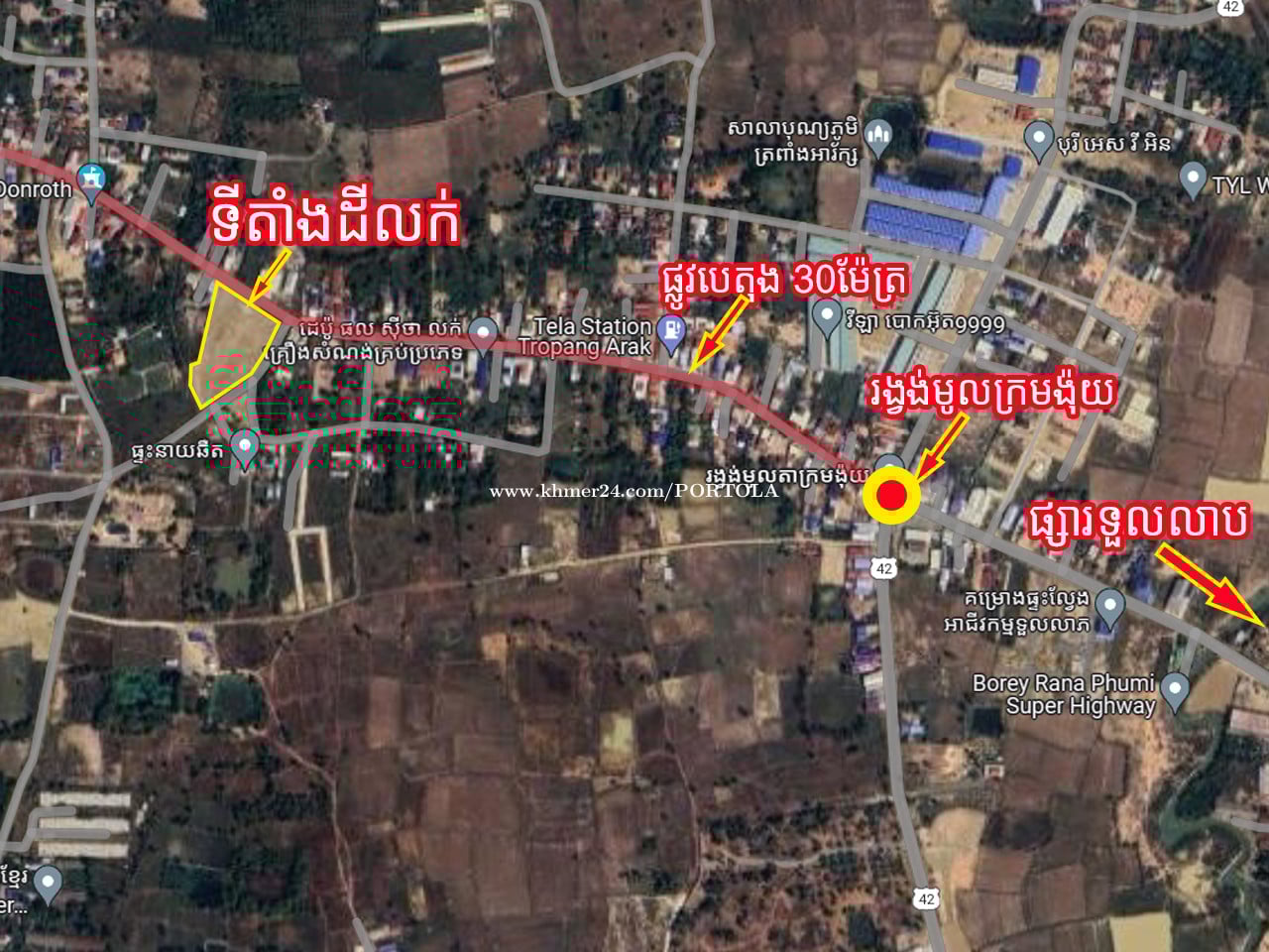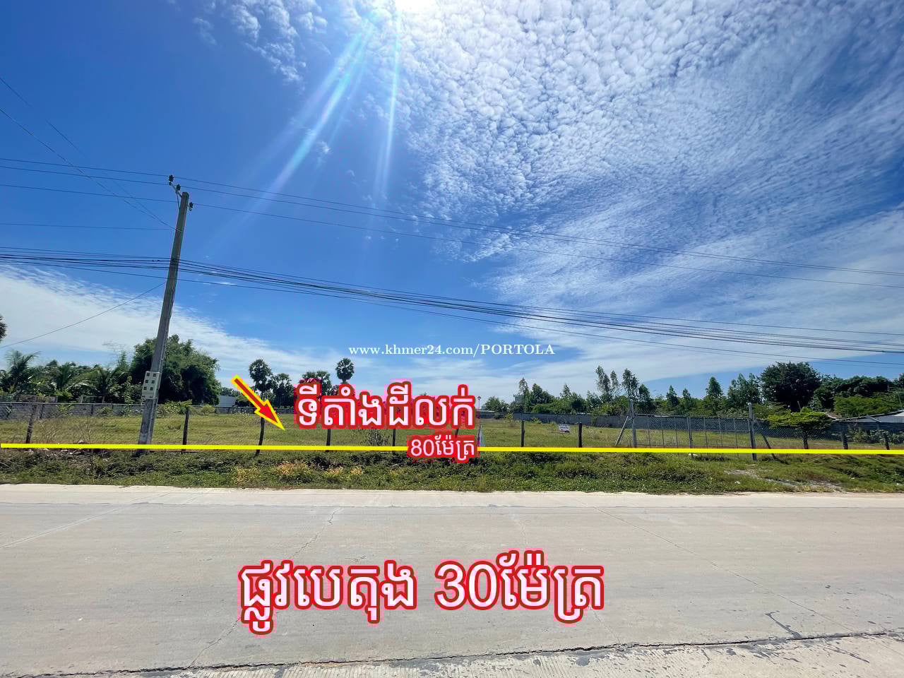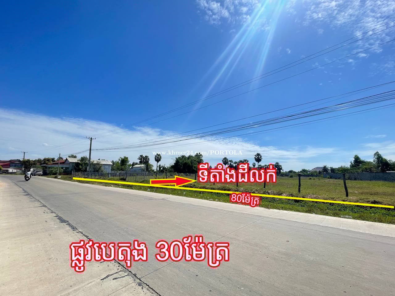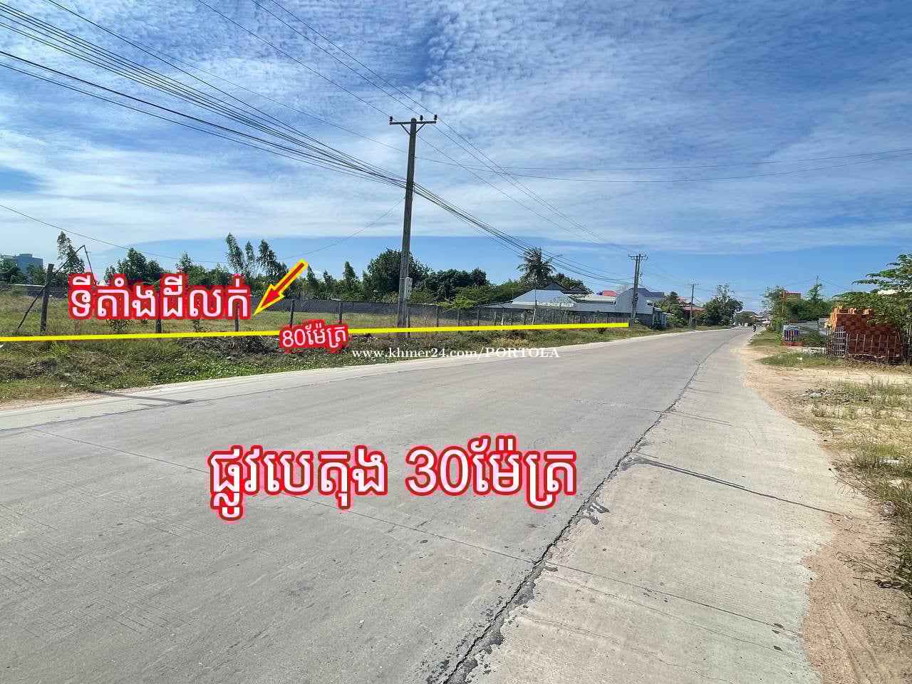ដីកែង ផ្លូវ3 សម្រាប់លក់ លើផ្លូវបេតុង 30ម៉ែត្រ 📍ទីតាំង ៖ សង្កាត់ ឪឡោក ខណ្ឌកំបូល ភ្នំពេញ ប្រហែល 600 ម៉ែត្រ ពីរង្វង់មូល ក្រមង៉ុយ (ទួលលាប) • ទំហំដី៖ សរុប 6,150 ម៉ែត្រការ៉េ ប្លង់រឹង ក្បាលជាប់ផ្លូវបេតុង ប្រវែង 80ម៉ែត្រ • តម្លៃ៖ $95/ ម៉ែត្រការ៉េ (ចរចាបាន) . ដីស្អាត កែង ផ្លូវ 3 (ផ្លូវមុខដី ទទឹង 30ម, ផ្លូវចំហៀងដី ទទឹង 10ម៉ែត្រ ផ្លូវក្រោយដី ទទឹង 6ម៉ែត្រ) • ដីល្អ សម្រាប់សង់ឃ្លាំង, ហ្គារ៉ាសាំង ឬ សម្រាប់ទិញទុកចំណេញ ទំនាក់ទំនង៖ 077975xxxClick To Call