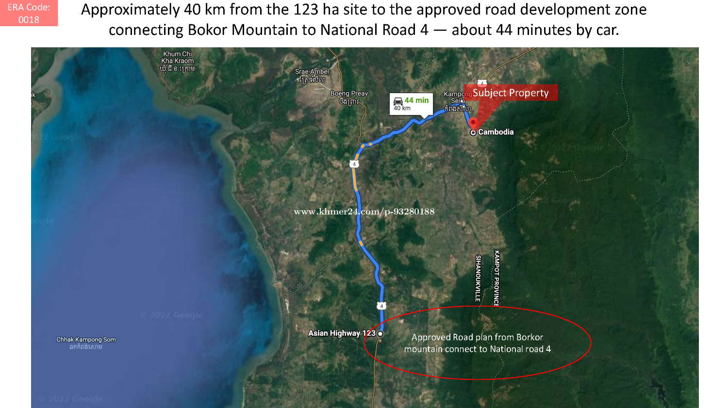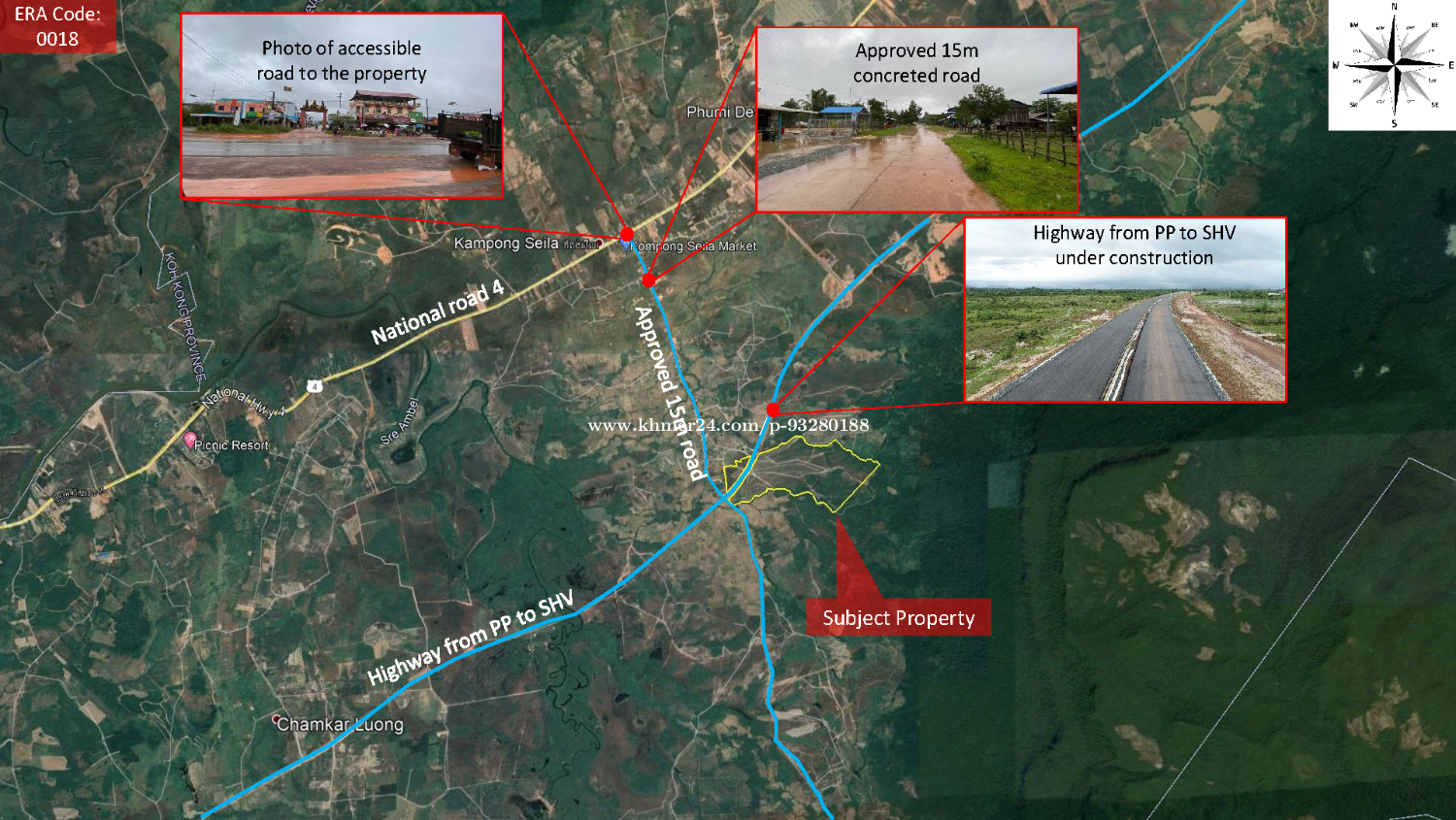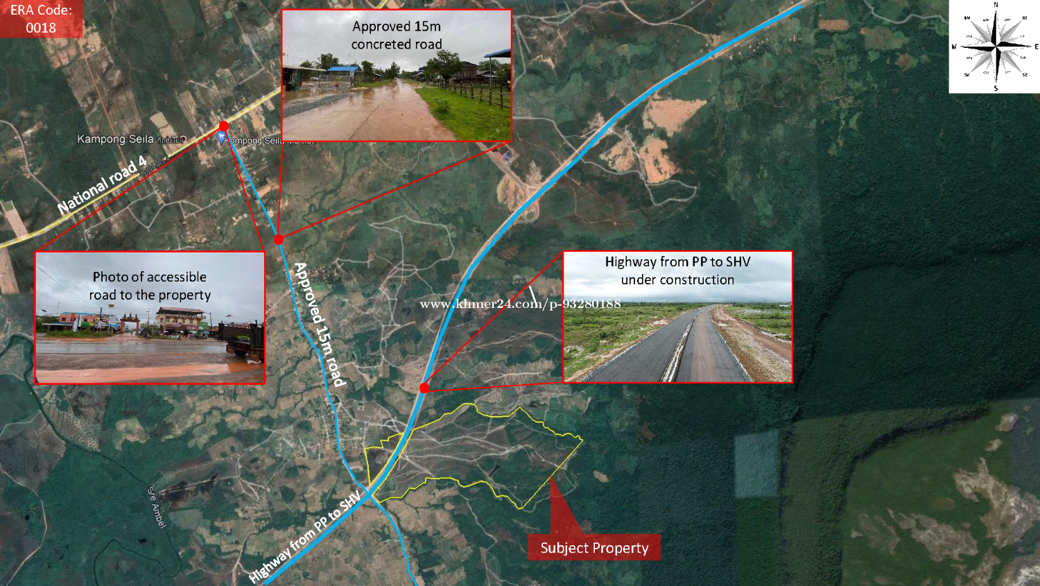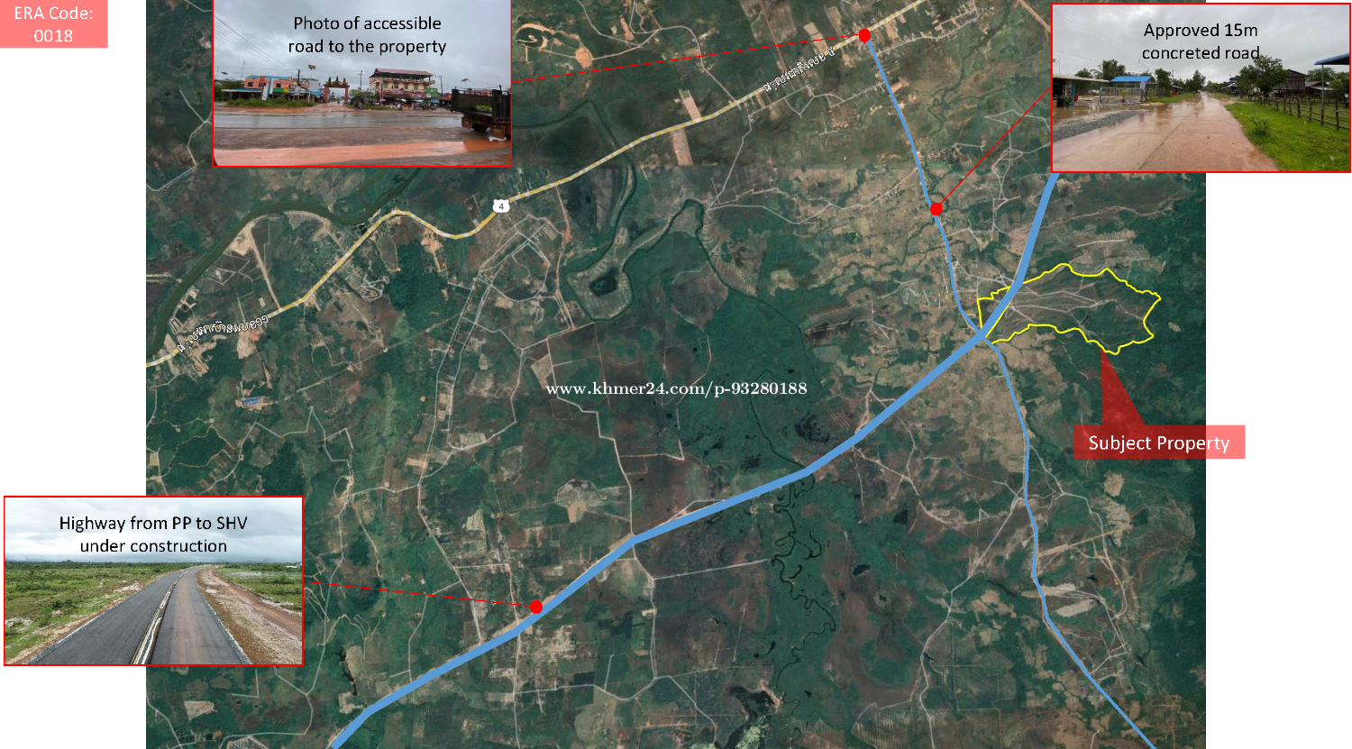 ERA Code 0018 ដីលក់បន្ទាន់ – ស្រុកកំពង់សីលា ខេត្តព្រះសីហនុ ទំហំដី: 123 ហិកតា ប្លង់: ប្លង់រឹង (L-Map Hard Title) ផ្លូវចូល: ផ្លូវទំហំ 15 ម៉ែត្រ តម្លៃលក់: 5 ដុល្លារ/ម៉ែត្រការ៉េ ស្ថិតនៅកន្លែងមានសក្តានុពលខ្ពស់ ល្អសមស្របសម្រាប់សាងសង់ កសិដ្ឋាន តំបន់សេដ្ឋកិច្ច កំពង់សម្ងួត ឬ ដាក់ធន់ដី។ ឱកាសល្អសម្រាប់វិនិយោគិនដែលកំពុងស្វែងរកដីទំហំធំសម្រាប់អភិវឌ្ឍន៍អនាគត។ Urgent Land for Sale – Kampong Seila District, Sihanoukville Land Size: 123 hectares Title: L-Map Hard Title Road Access: 15-meter road Asking Price: USD 5 per m² Strategically located in a high-potential area, ideal for developing a farm, economic zone, dry port, or land banking. Excellent opportunity for investors seeking large land holdings with strong future growth prospects. 紧急出售土地 – 西哈努克省甘榜西拉区 **土地面积:**123 公顷 **产权证:**L-Map 不动产硬卡 **道路通行:**15 米宽道路 **售价:**每平方米 5 美元 地理位置优越,具有高发展潜力,非常适合建设农场、经济特区、干港或土地储备。这是投资者获取大面积土地、布局未来发展的绝佳机会。 Location:https://maps.app.goo.gl/b59Gs5CCgxKR4j1Z7 Website:elephantrealestate.net Channel Telegram: https://t.me/Elephant140694 Tel: 011665xxxClick To Call/093280xxxClick To Call Telegram: https://t.me/ThouchChandara