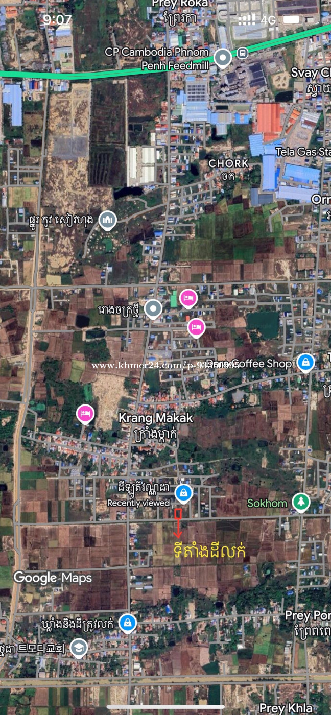 តម្លៃលក់ 135000$ (ទំហំ20mx38m) ម្ចាស់ដីផ្ទាល់ 👉🏻 អាចធ្វើហ្ការ៉ាសជួសជុលឡាន ឃ្លាំងដាក់ទំនិញ ឬ ធ្វើផ្ទះលំហែជាយក្រុង 👉🏻ជាប់ផ្លូវទំហំ30m ចុះពីផ្លូវជាតិចម្ងាយ 50m 👉🏻ដីនៅក្បែររោងចក្រ អាចសាងសង់ផ្ទះជួលបាន 👉🏻មានទឹកស្អាតប្រើប្រាស់ ភ្លើងរដ្ឋ និងអុីនធឺណែត 👉🏻Telegram: 078438xxxClick To Call / 0968438xxxClick To Call 📍ទីតាំងល្អក្រោយរោងចក្រសុីភី ផ្សារបែកចាន ស្រុកអង្គស្នួល ខេត្តកណ្តាល