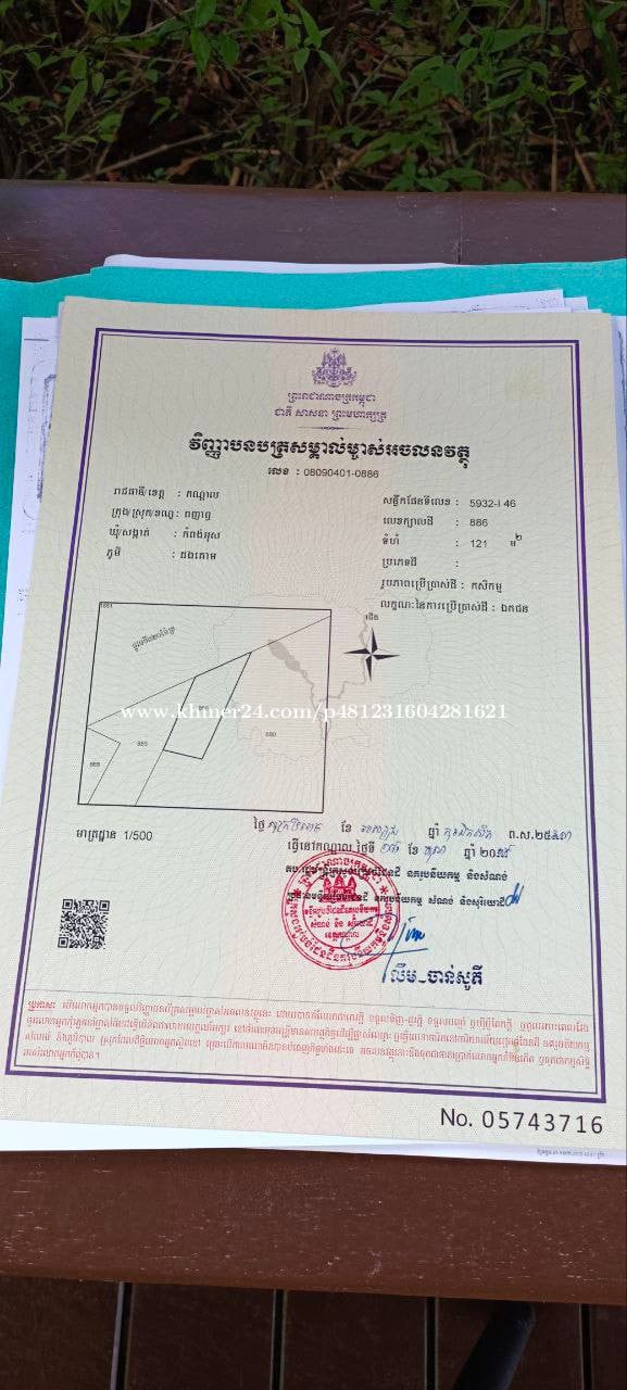 ដីជាយក្រុងដែលជាទីតាំងក្នុងគម្រោងអភិវឌ្ឍន៍នាពេលខាងមុខទីតាំងដីស្ថិតនៅចន្លោះផ្លូវជាតិលេខ៥មិងផ្លូវជាតិលេខ៦។ បញ្ជាក់តម្លៃនេញកាត់ឈ្មោះខ្លួនឯង។ បើសិនបងប្អូនចាប់អារម្មណ៍អាចទាក់ទងបានតាមលេខតេលេក្រាម 0884048xxxClick To Call។
