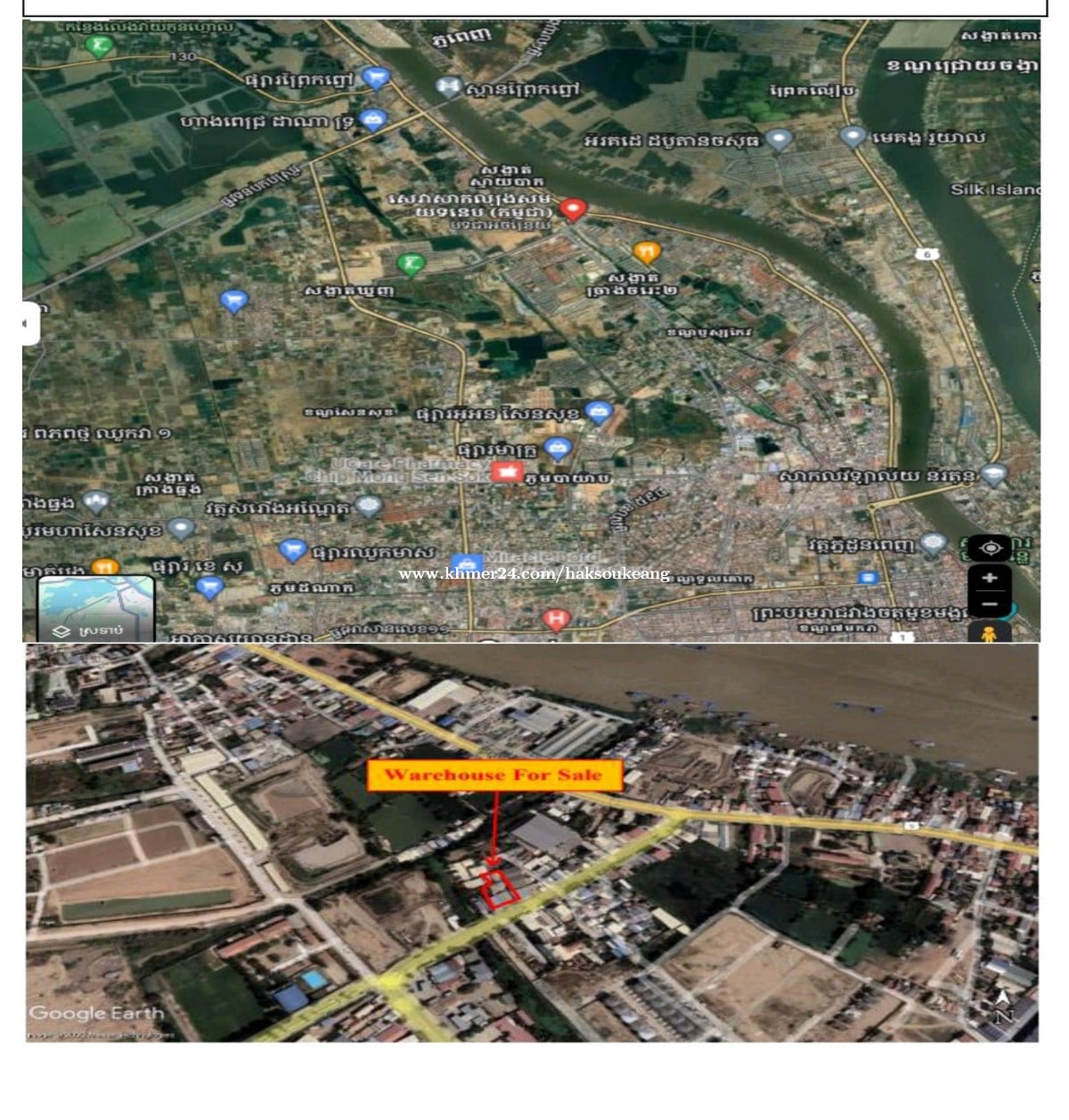 ដីលក់បន្ទាន់ តម្លៃក្រោមទីផ្សារ ជិតបុរីជីបម៉ុង នឹង បុរីពិភពថ្មី អាចបើករោងចក្រ នឹងសាលា អាគារបាន មានទីតាំងធំទូលាយ មានទីប្រជុំជនរស់នៅច្រើន Location: សង្កាត់ ស្វាយប៉ាក ខណ្ឌឫស្សីកែវ ក្រុងភ្នំពេញ Svay Pak, Ruessei Kaev, Phnom Penh ទំនាក់ទំនងលេខទូរស័ព្ទ :012805xxxClick To Call/087 38 58 70 Telegram :087385xxxClick To Call