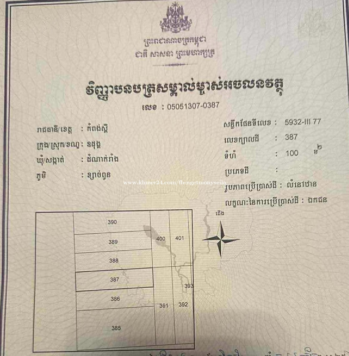 ដីលក់ប្រញាប់លុយ 5x20 = 3500$ ចរចារ 098599xxxClick To Call