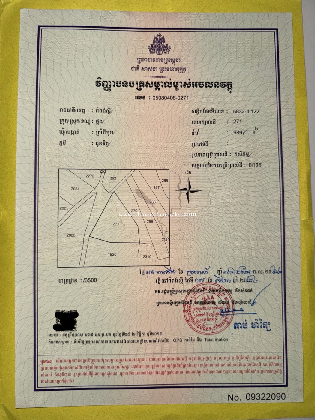 ដីលក់ប្លង់រឹង 0.98 ha ផ្លូវ 12 m