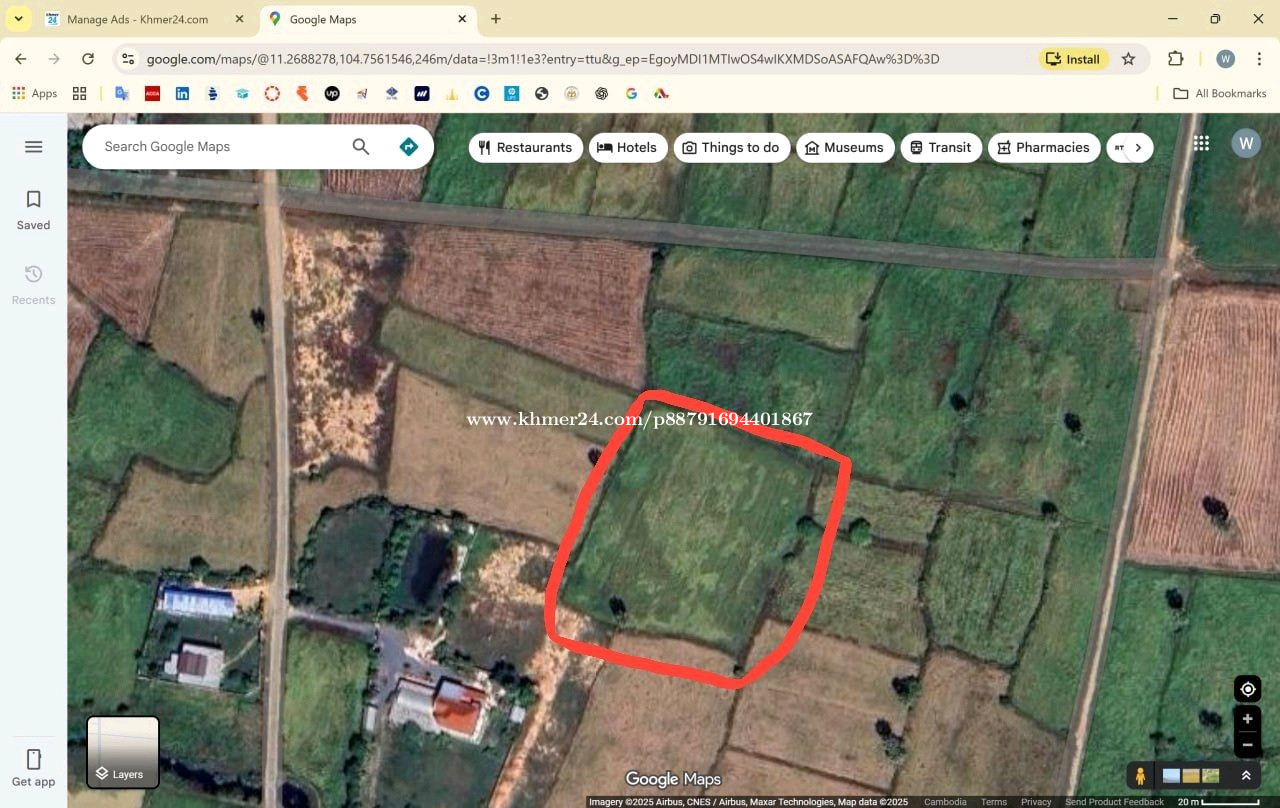 ដីលក់ផ្លូវជាតិលេខ 3 ចុះពីផ្សារត្រាំខ្នារប្រហែល 5km