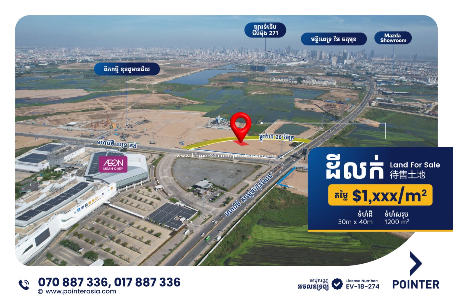 - តម្លៃលក់ ៖ $1,xxx/m2 (អាចចរចាបាន) - ក្បាលដីប្រវែង 30m ជម្រៅ 40m - ទំហំដីសរុប៖ 1,200m2 - កាត់ប្លង់រឹងជូន - លេខអាជ្ញាបណ្ណ : EV-18–274 ☎️ លេខទំនាក់ទំនង: 017887xxxClick To Call / 070887xxxClick To Call 📲Telegram: t.me/Pointerproperties