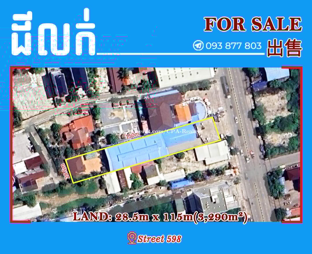 ⭕️ដីលក់លើផ្លូវ598 🆔10230-1 💢ទំហំដី: 28.5 x 115m (3,290m2) 💢តម្លៃលក់: $1,300/m2 ចរចារ ☎️ 𝟎𝟗𝟑 𝟖𝟕𝟕 𝟖𝟎𝟑 𝙩𝙚𝙡𝙚𝙜𝙧𝙖𝙢: https://t.me/cparealtors 𝙬𝙚𝙘𝙝𝙖𝙩 𝙄𝘿: 𝘾𝙋𝘼_𝙍𝙚𝙖𝙡𝙩𝙮 𝙩𝙚𝙡𝙚𝙜𝙧𝙖𝙢 𝙘𝙝𝙖𝙣𝙣𝙚𝙡: https://t.me/cparealty