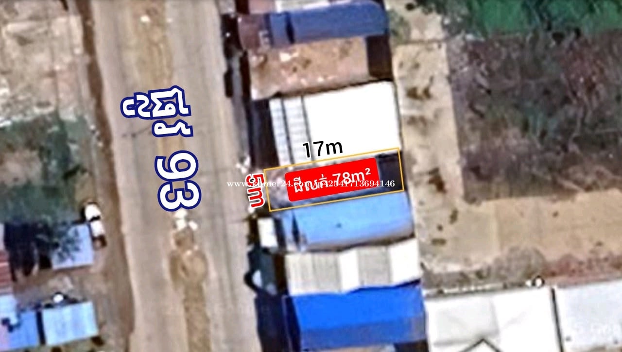 ដីលក់ឡៃឡុង ជាប់ផ្លូវ 93 សង្កាត់ឬស្សីកែវ ខណ្ឌឬស្សីកែវ ភ្នំពេញ ទំហំ: 78m² (ប្លង់រឹង) តម្លៃ: 159,000$ ចរចារ ទំនាក់ទំនងម្ចាស់ផ្ទាល់