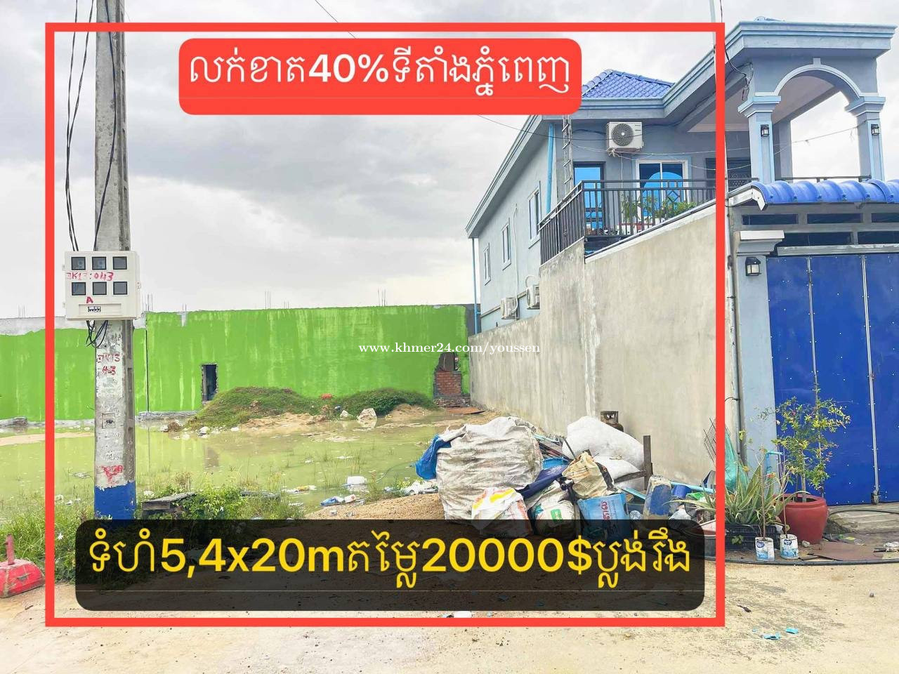 ដីលក់លក់បន្ទាន់ ម្ចាស់ផ្ទាល់ 5.4x20=2មុឺន ប្លង់រឹង ជាប់ផ្លូវបេតុង 8ម៉ែត្រ បន្ទប់ជួល ជុំវិញ 011505xxxClick To Call
