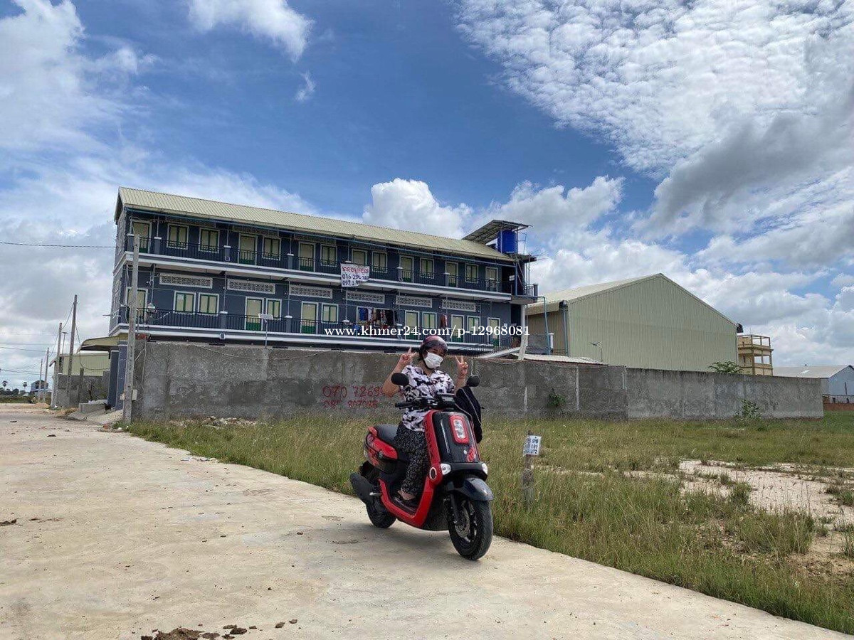 ដី ទទឹង 4.5 m និង បណ្តោយ 27 m ចុះពីផ្លូវរដ្ឋ 15m ផ្លូវ ប៉េតុង 8m នៅជាប់រោងចក្រដែលកំពុងដំណើរការ មានឃ្លាំង បន្ទប់ជួល មានប្រជាជនរស់នៅច្រើន ប្លង់បំបែក ក្បាលដី ជិតផ្លូវល្បឿនលឿន ជាដីដែលកំពុងអភិវឌ្យខ្លាំង មាន 3ឡូ ជាប់ៗ គ្នា ១ឡូក៏លក់ ២ឡូក៏លក់ ៣ឡូក៏លក់