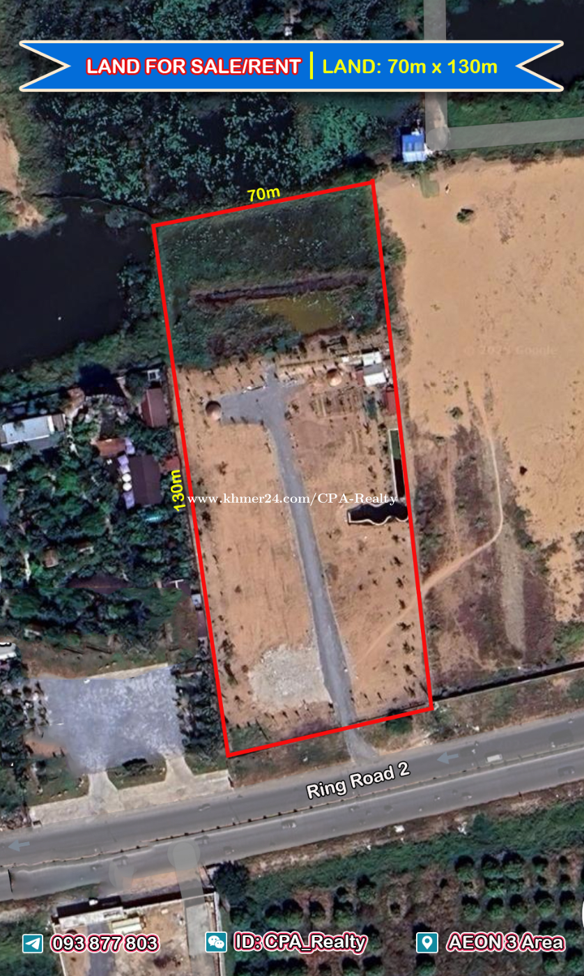 ⭕️ដីលក់/ជួលម្តុំAEON3 🆔10932 💢ទំហំដី: 70m x 130m 💢តម្លៃលក់: $1,000/m2 ចរចារ 💢តម្លៃជួល: $1/m2 ចរចារ 📍ទីតាំង៖ ផ្លូវក្រវ៉ាត់ក្រុងទី២ ☎️ 𝟎𝟗𝟑 𝟖𝟕𝟕 𝟖𝟎𝟑 𝙩𝙚𝙡𝙚𝙜𝙧𝙖𝙢: https://t.me/cparealtors 𝙬𝙚𝙘𝙝𝙖𝙩 𝙄𝘿: 𝘾𝙋𝘼_𝙍𝙚𝙖𝙡𝙩𝙮 𝙩𝙚𝙡𝙚𝙜𝙧𝙖𝙢 𝙘𝙝𝙖𝙣𝙣𝙚𝙡: https://t.me/cparealty