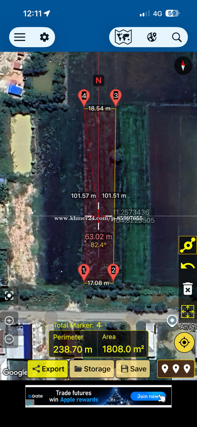 ដីលក់ទីប្រជុំជន ផ្សារសំរ៉ោងយោង ទំហំដី 17m*102m ទំហំក្នុងប្លង់ 1805m2 តម្លៃ 35$/1m2 ចរចារជាមួយម្ចាស់ផ្ទាល់ Tel: 085997xxxClick To Call