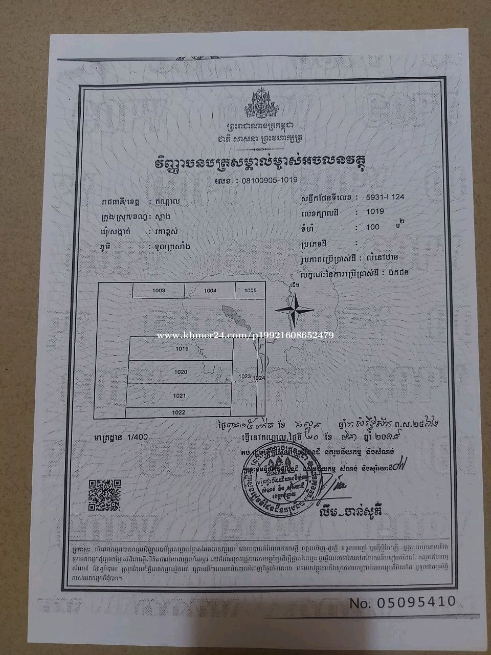 ដីលក់ប្រញាប់តម្លៃខាងលើអាចចរចារគ្នាបានទៀត [Urgent Sale and the above vacant land price is negotiable]។ ដីខាងលើនេះជាដីរបស់ខ្ញុំផ្ទាល់ ប្លង់រឹង ១០០ sqm។