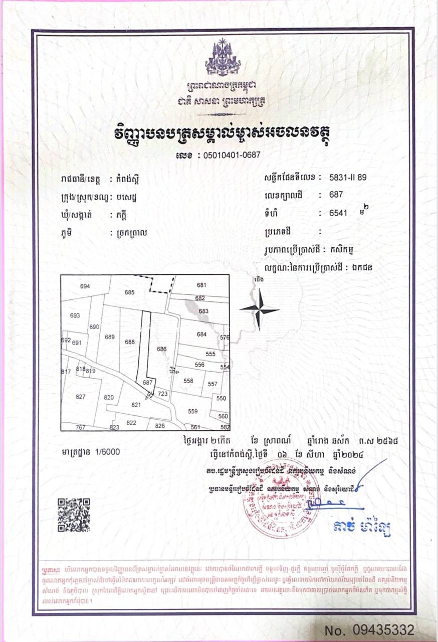 📣ដីលក់ ✔️ទំហំដី: (6541m)ក្បាល70m 12$1m2 ចរចារ 📍ទីតាំងដីស្ថិតនៅឃុំភក្កី ស្រុកបសេដ្ឋ ខេត្តកំពង់ស្ពឺ ☎️070636xxxClick To Call👉Telegram ☎️012636xxxClick To Callhttps://maps.app.goo.gl/c674Mkck7Emi55j38?g_st=it