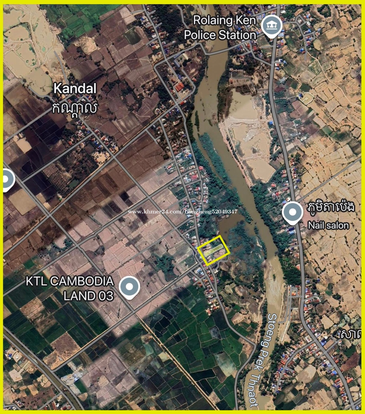 ដីលក់ជាប់ស្ទឹងព្រែកត្នោត ក្បាលដីជាប់ផ្លូវបេតុង ស្ថិតនៅតំបន់សេដ្ឋកិច្ច ក្បែរផ្សារ សាលារៀន មន្ទីរពេទ្យ លក់ក្រោមទីផ្សារ30% មានរថយន្តជូនទៅមេីលដីផ្ទាល់