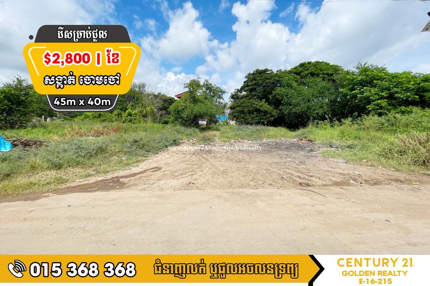 ដីសម្រាប់ជួល​ 🚩តម្លៃ $2,800/ខែ (ចរចារ​) 🚩ទីតាំង​ សង្កាត់​ចោមចៅ ខណ្ឌ​ពោធិសែនជ័យ រាជធានីភ្នំពេញ។ 👉 ទំហំដី 45m x 40m ព័ត៌មានលម្អិតសូមទំនាក់ទំនងមកទូរស័ព្ទលេខ: ☎️ 015368xxxClick To Call / 099655xxxClick To Call / 0236558xxxClick To Call​ 📩Telegram t.me/c21goldenrealtyhotline
