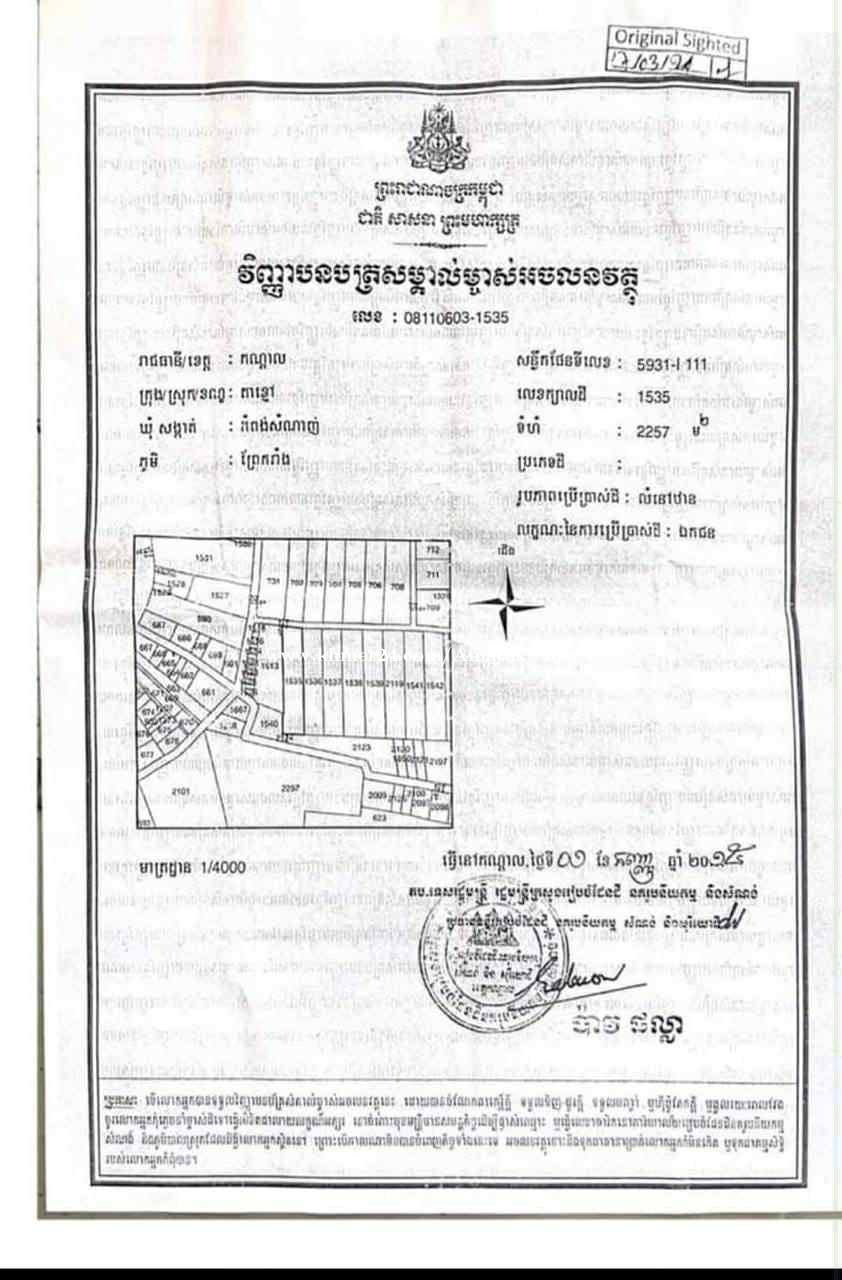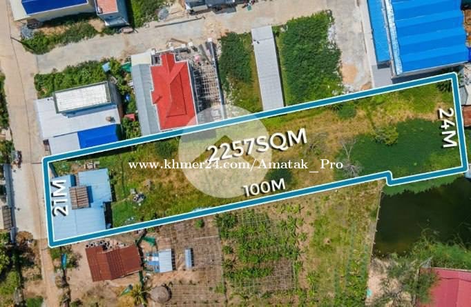ដីសម្រាប់លក់ នៅក្រុងតាខ្មៅ ចុះផ្លូវធំ1km និង2km ពីវិទ្យាល័យក្រុងតាខ្មៅ • តម្លៃលក់ : $155/1m2 ចរចា • ទំហំដី : 21ម x 100ម • ទំហំប្លង់រឹង : 2257m2 • បែរទិសខាងជើង · ផ្លូវបេតុង8ម