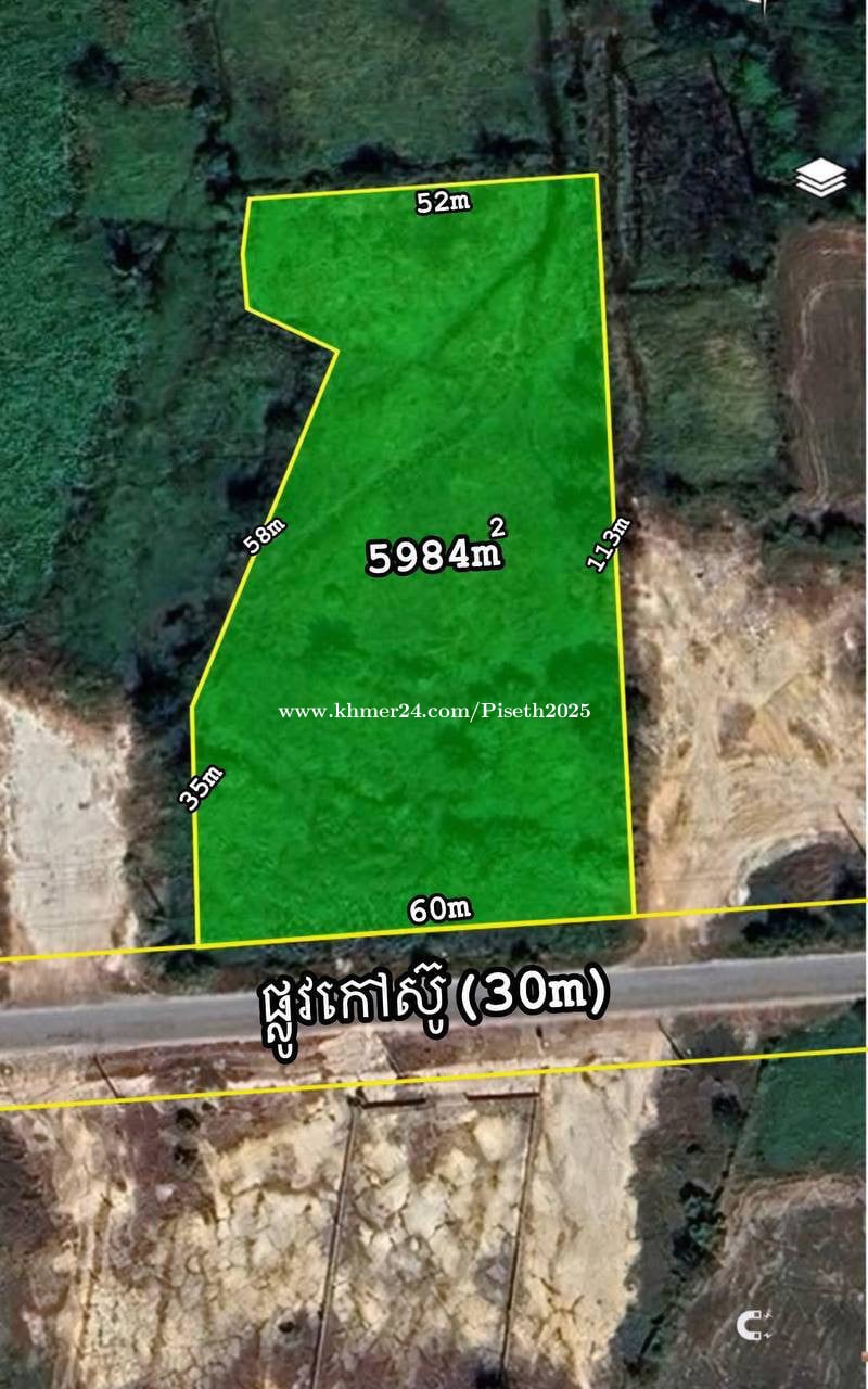 📣ដីសម្រាប់លក់ #ជាប់ផ្លូវកៅស៊ូ(30m) ស្រុកកណ្តាលស្ទឹង 👉ចុះពីNR2 ចម្ងាយ500m » តម្លៃពីមុន $120/m2 ✅ តម្លៃថ្មីត្រឹមតែ $99/m2 ប៉ុណ្ណោះ » ទំហំដី 60m x 113m (ក្នុងប្លង់ 5984m2) » ប្រភេទកម្មសិទ្ធិ ប្លង់រឹង (L-Map) » សមស្របសម្រាប់សង់ឃ្លាំងស្តុកទំនិញ ឬ រោងសិប្បកម្ម ។ល។ ⛳️ទីតាំងដី ស្ថិតនៅភូមិចំបក់ត្រប់ ឃុំព្រែករកា ស្រុកកណ្តាលស្ទឹង ខេត្តកណ្តាល ។ ☎️ទំនាក់ទំនងបន្ថែម 012587xxxClick To Call / 016333xxxClick To Call