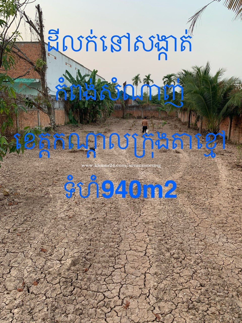 ដីនៅកំពង់សំណាញ់ ក្រុងតាខ្មៅ ទំហំ 940 ម៉ែត្រការ៉េ តំលៃ 280 $ក្នុងមួយការ៉េ (ចចារ) ប្លង់រឹង