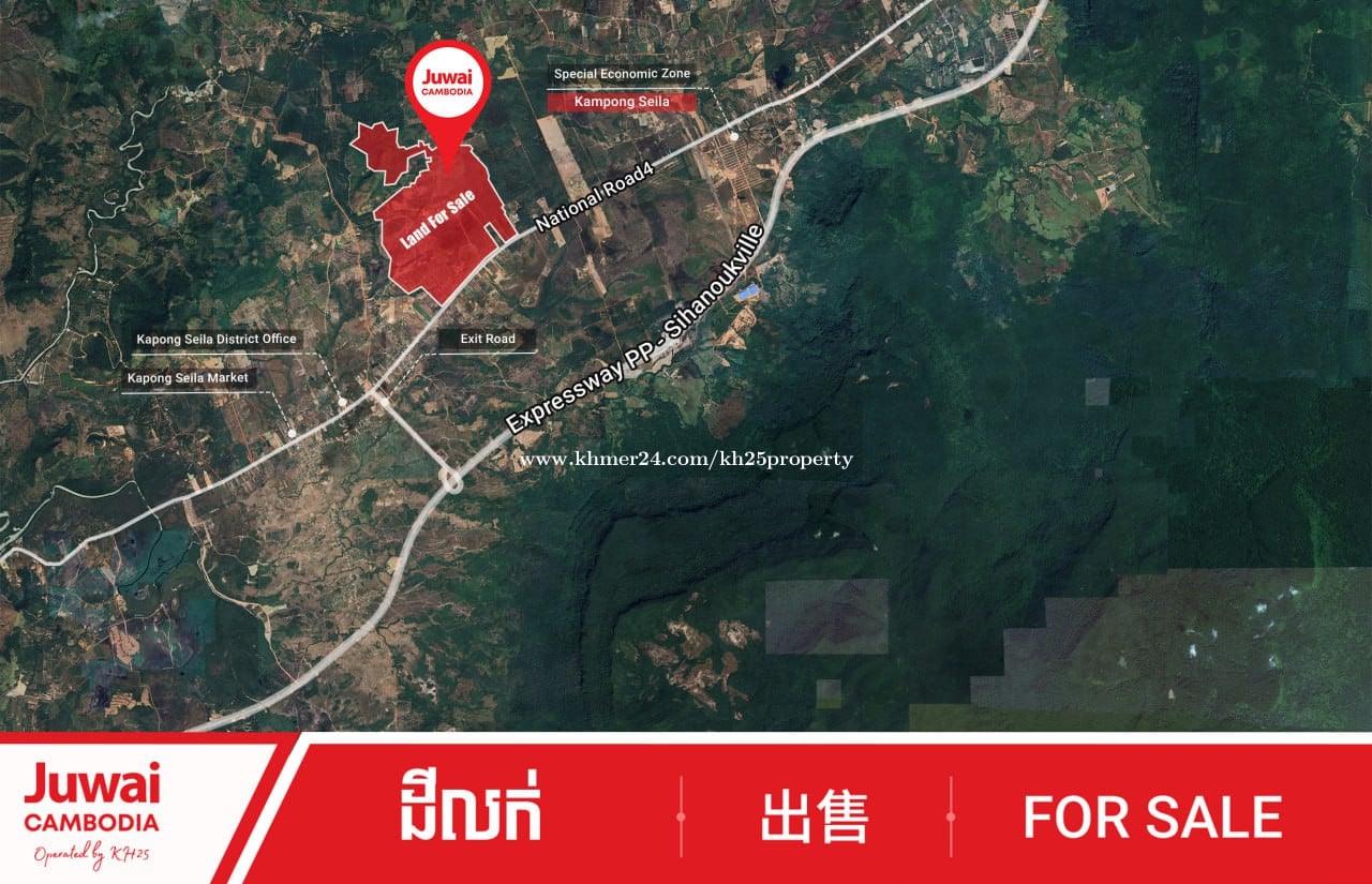 ដីលក់ ទីតាំង: ផ្លូវជាតិលេខ៤ ឃុំកំពង់សីលា ស្រុកកំពង់សីលា ខេត្តព្រះសីហនុ - តម្លៃ: $12/ម៉ែត្រការ៉េ - ទំហំ: 587 ហិចតា - ក្បាលដីៈ 2,000ម លេខ ID: SS0003 ........................................ Land For Sale Location: National Road 4, Kampong Seila Commune, Kampong Seila District, Preah Sihanouk Province. - Price: $12/m2 (negotiable) - Land Area: 587 ha - Frontage: 2,000m ID: SS0003