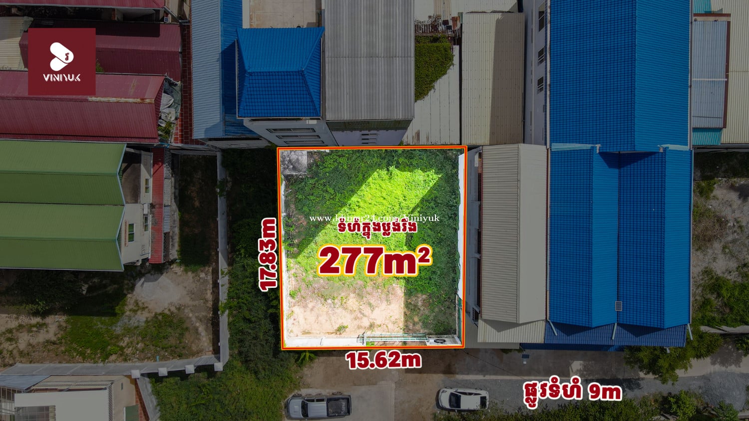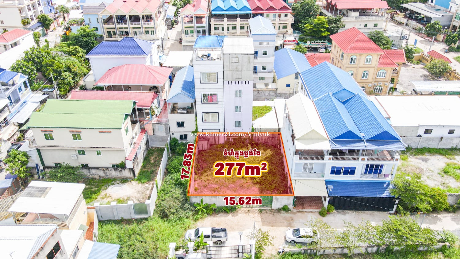 🏡ដីតម្លៃល្អ លក់បន្ទាន់!! 📍ទីតាំង ៖ នៅសង្កាត់គោកឃ្លាង ខណ្ឌសែនសុខ រាជធានីភ្នំពេញ - តម្លៃលក់ : $124,000 ចរចា - ទំហំដី : 15.62m x 17.83m ( ទំហំក្នុងរឹង 277m²) - មានរបងជុំវិញ - បានភ្ជាប់ទឹក និងភ្លើង(63) រួចហើយ - ផ្លូវ 9ម៉ែត្រ - ប្លង់រឹង - លេខអាជ្ញាប័ណ្ណ : E-22-404