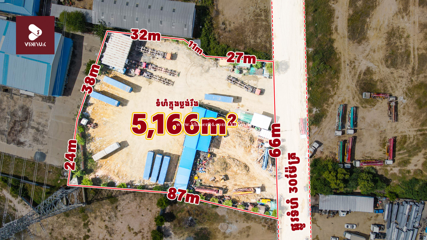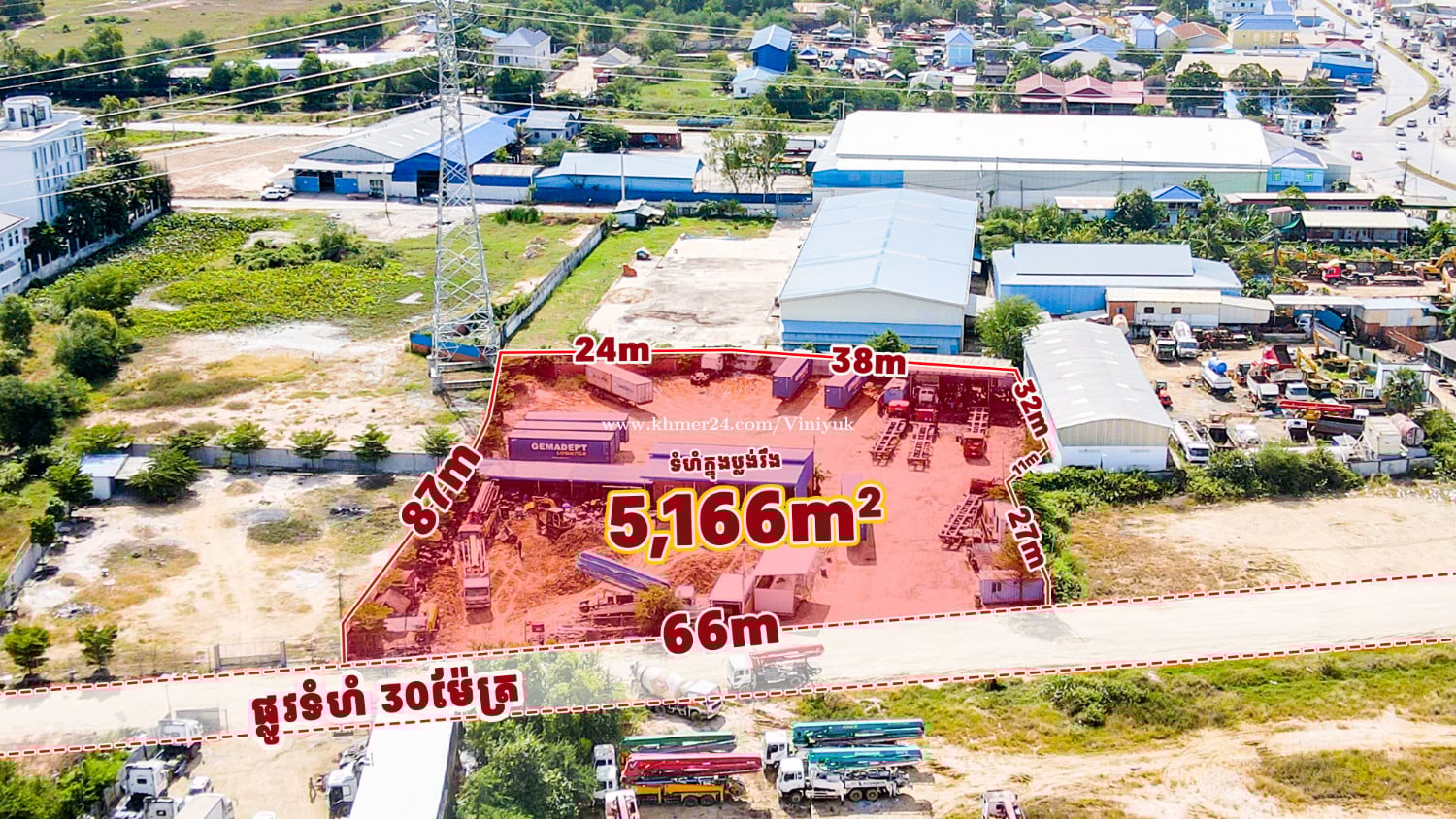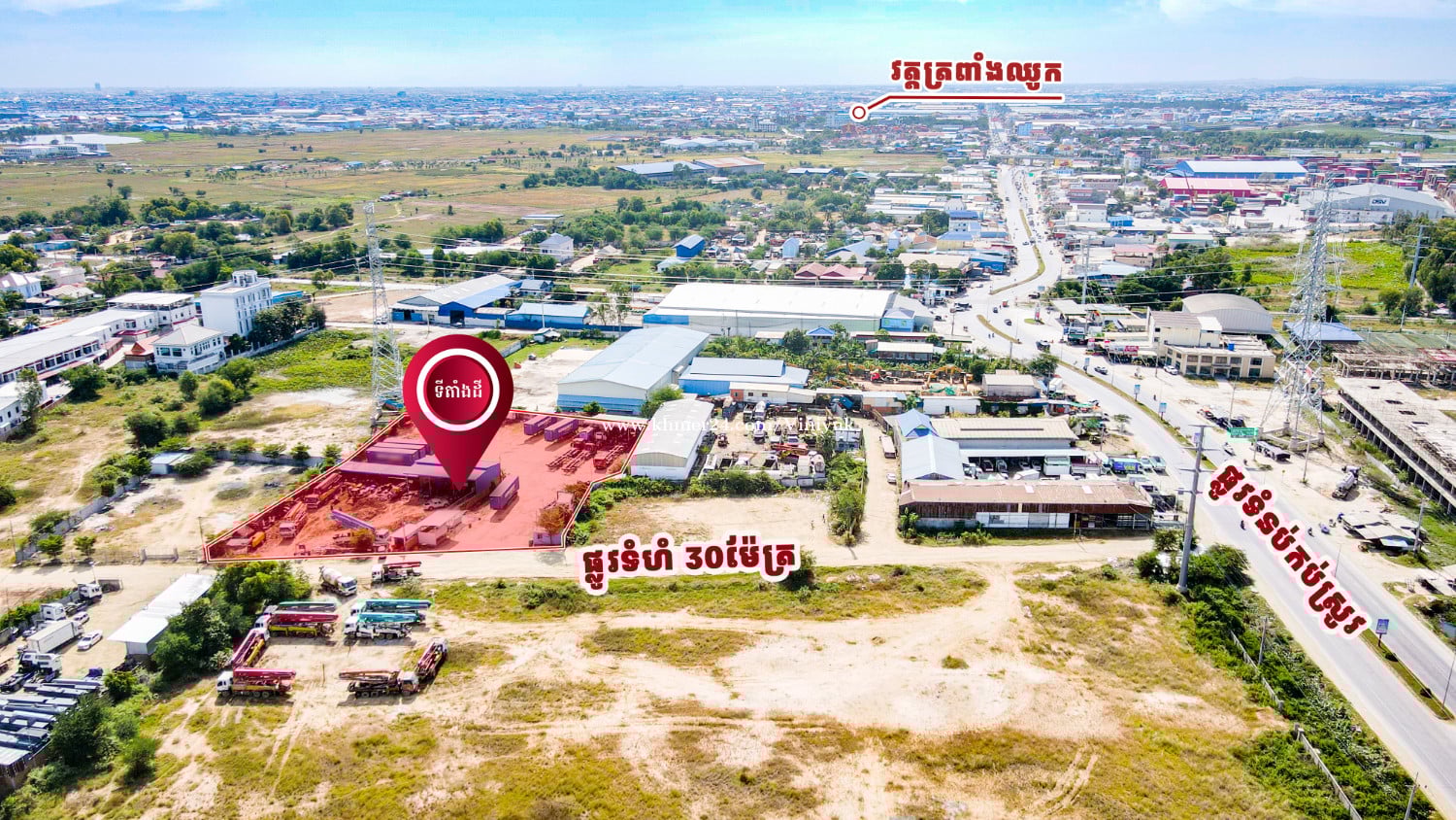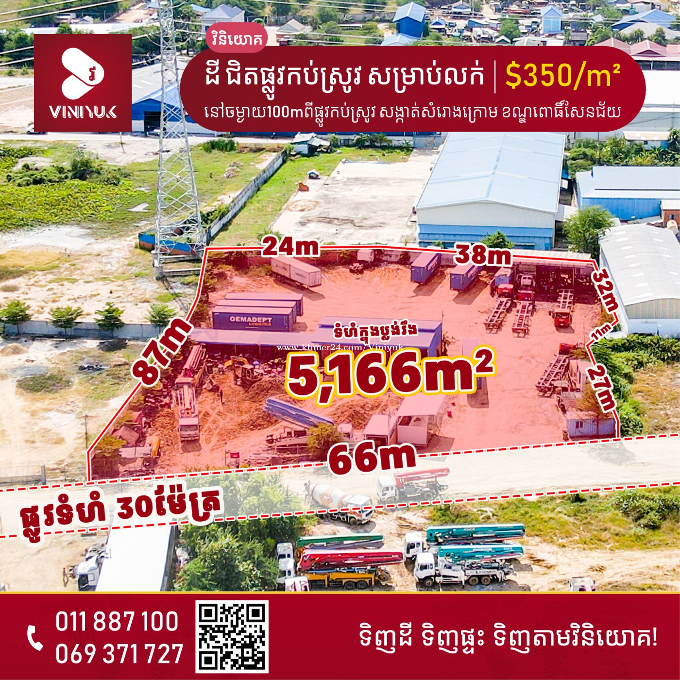 ដី ជិតផ្លូវកប់ស្រូវ សម្រាប់លក់ !! 📍ទីតាំងដី ៖ នៅចម្ងាយ 100m ពីផ្លូវកប់ស្រូវ សង្កាត់សំរោងក្រោម ខណ្ឌពោធិ៍សែនជ័យ រាជធានីភ្នំពេញ - តម្លៃលក់ $350/m² (ចរចា) - ទំហំដី: 66m x 87m (ប្លង់រឹង 5,166m²) - ផ្លូវមុខដីទំហំ 30m - មានចំណូលពីការជួល 3 ពាន់ជាង ក្នុងមួយខែ - ផ្ទេរកម្មសិទ្ធិប្លង់រឹង - លេខអាជ្ញាប័ណ្ណ : E-22-404