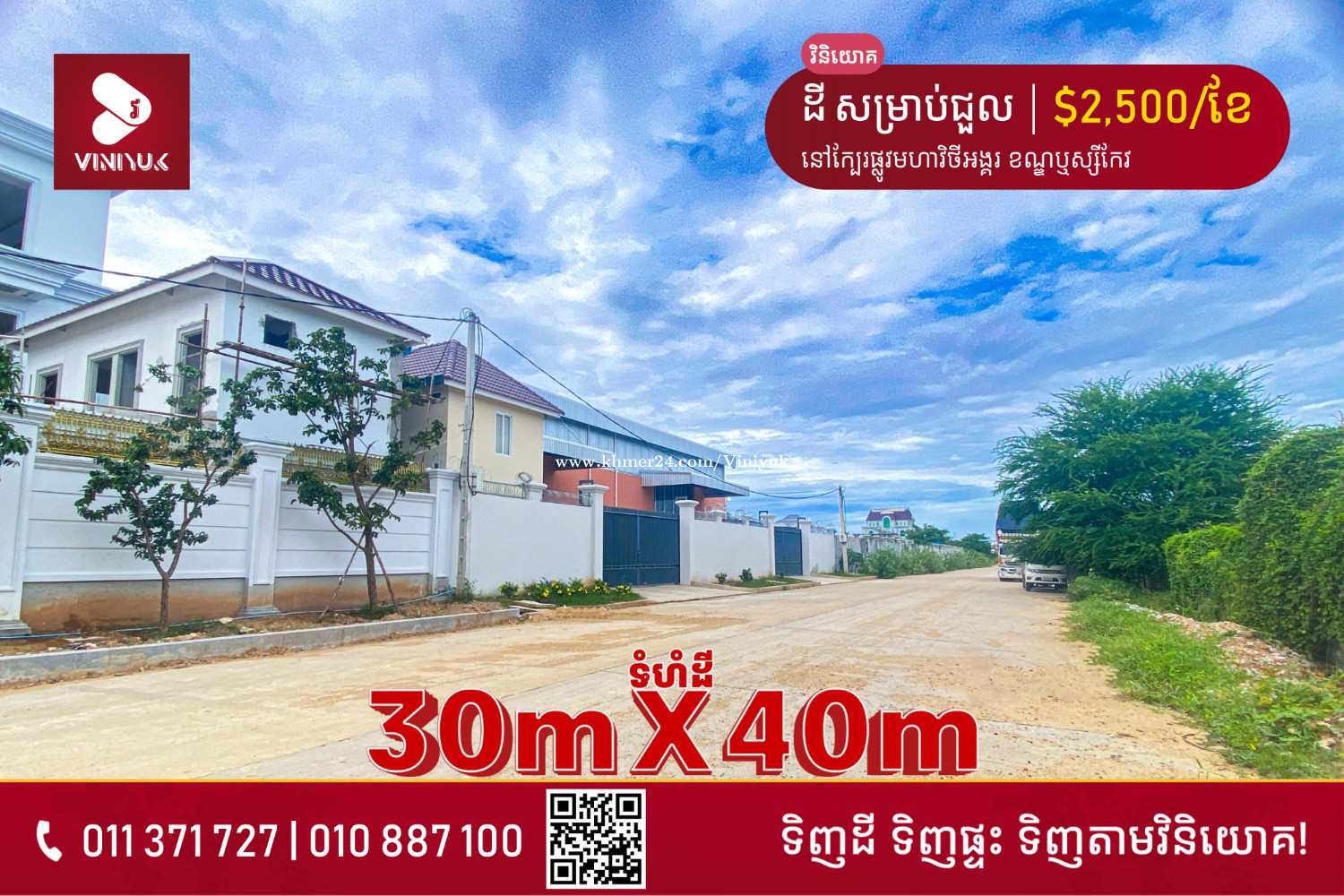🏡ដី សម្រាប់ជួល!! 📍ទីតាំង ៖ នៅក្បែរផ្លូវមហាវិថីអង្គរ ខណ្ឌឫស្សីកែវ រាជធានីភ្នំពេញ - ជួល: $2,500/ខែ ចរចា - ទំហំដី: 40m x 30m - ទិសបែរជើង - លេខអាជ្ញាប័ណ្ណ : E-22-404