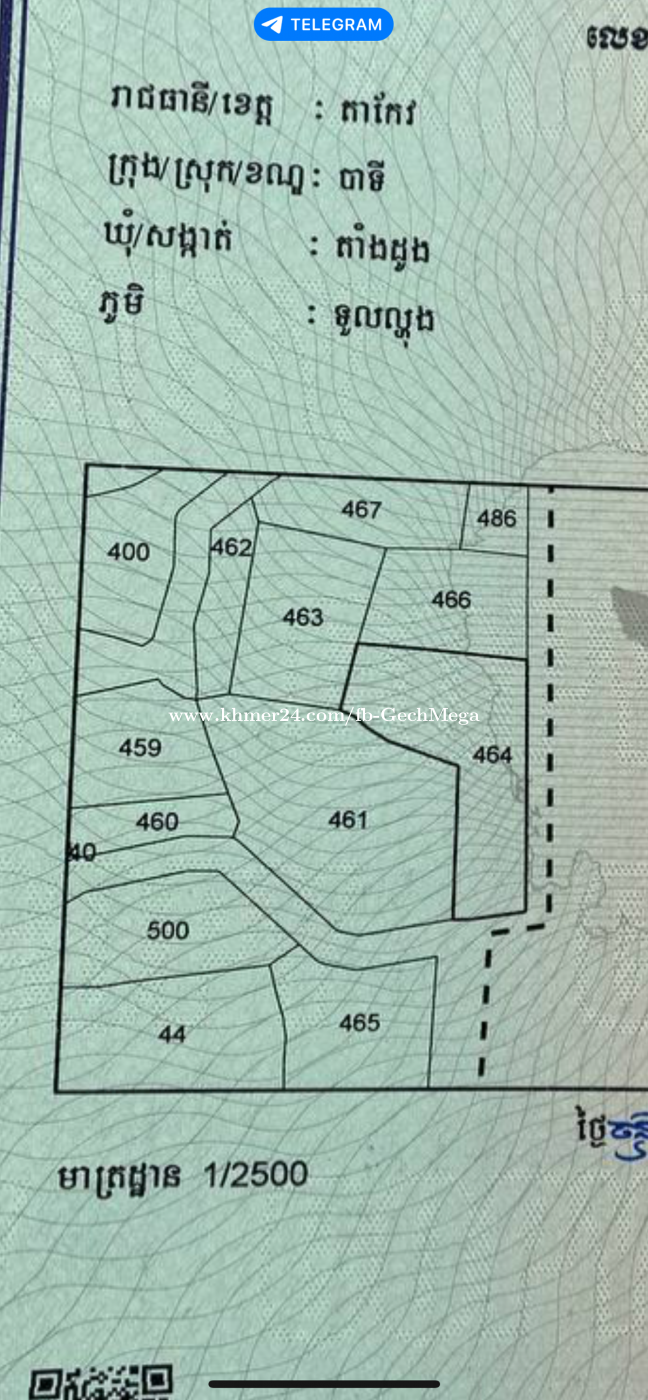 ទីតាំងផ្លូវជាតិលេខ3 សង្កាត់តាំងដូង ភូមិទួលល្ហុង ខេត្តតាកែវ ដីជាប់ផ្លូវរោងចក្រជុំវិញ ជាប់ផ្លូវថ្នល ចូលពីថ្នលជាតិ14 ម៉ែត្រ 65/m2