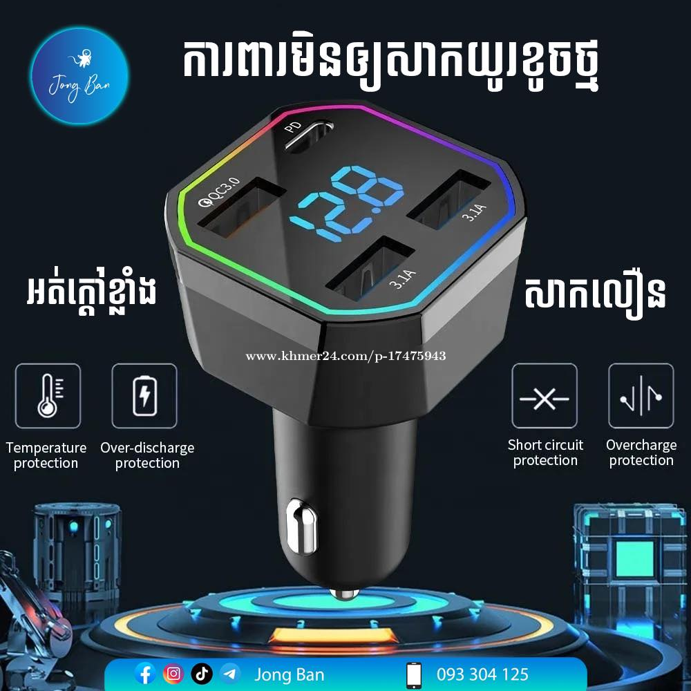 😍ចង់បានដុយសាក USB ដាក់ក្នុងឡានមួយអត់បងៗ? សាកលឿនកប់ ស្អាត.. ហើយទំនើបល្អប្រើណាស់ សាកដោយអត់ខូចថ្មទូរសព្ទ៍ឡើយ 🤩 4 in 1 USB Port Car Quick Charing អាចកុម្ម៉ង់បានពី Jong Ban 😍💙 ✨20% discount early purchase ✨ ពិសេសត្រង់: ⚡️ មានរន្ធ 4 port សម្រាប់សាកថ្មក្នុងឡាន ⚡️ សាកចោលយូរអត់ខូចថ្មមានប្រព័្ធការពារ ⚡️ សាកថ្មលឿនល្អណាស់ ⚡️មានតួលេខឌីជីថលប្រាប់ពី Watt ⚡️ មានភ្លើងពណ៍RGB ភ្លឺស្អាត មានក្នុងស្តុកស្រាប់ បងៗអាចកុម្ម៉ងបាន 🙏🏻😍 Free ថ្លៃដឹកសម្រាប់បងនៅកណ្តាលក្រុង promotion 🙏🏻 #jongban #car #port #USB #charging