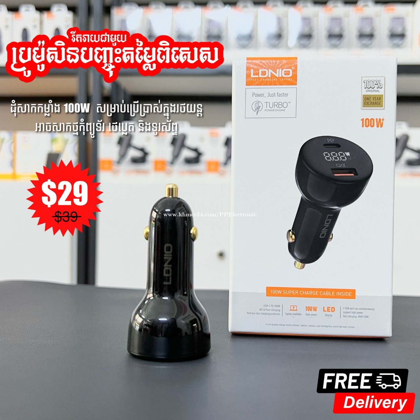 ដុំសាកកម្លាំង 100 W សម្រាប់ប្រើប្រាស់ក្នុងរថយន្ត អាចសាកថ្មកុំព្យូទ័រ ថេប្លេត និង ទូរស័ព្ទ