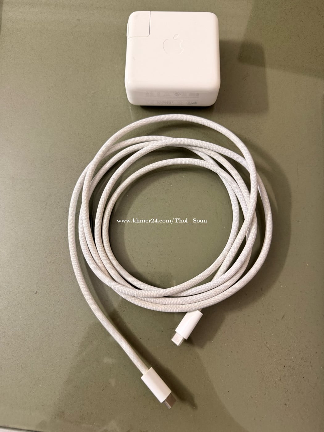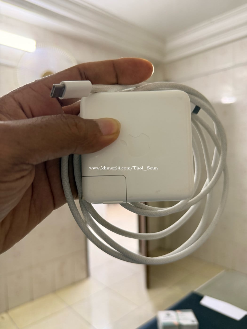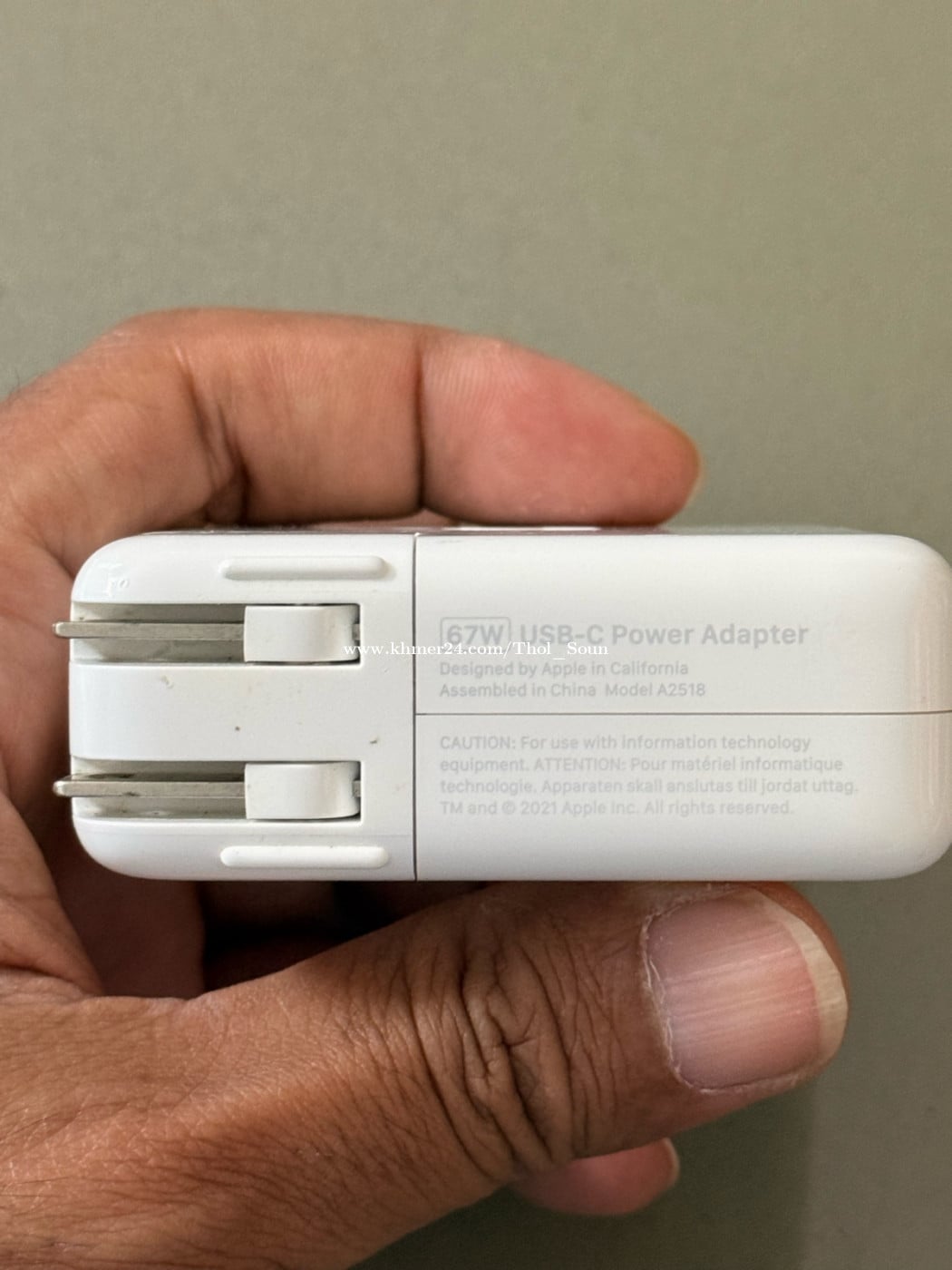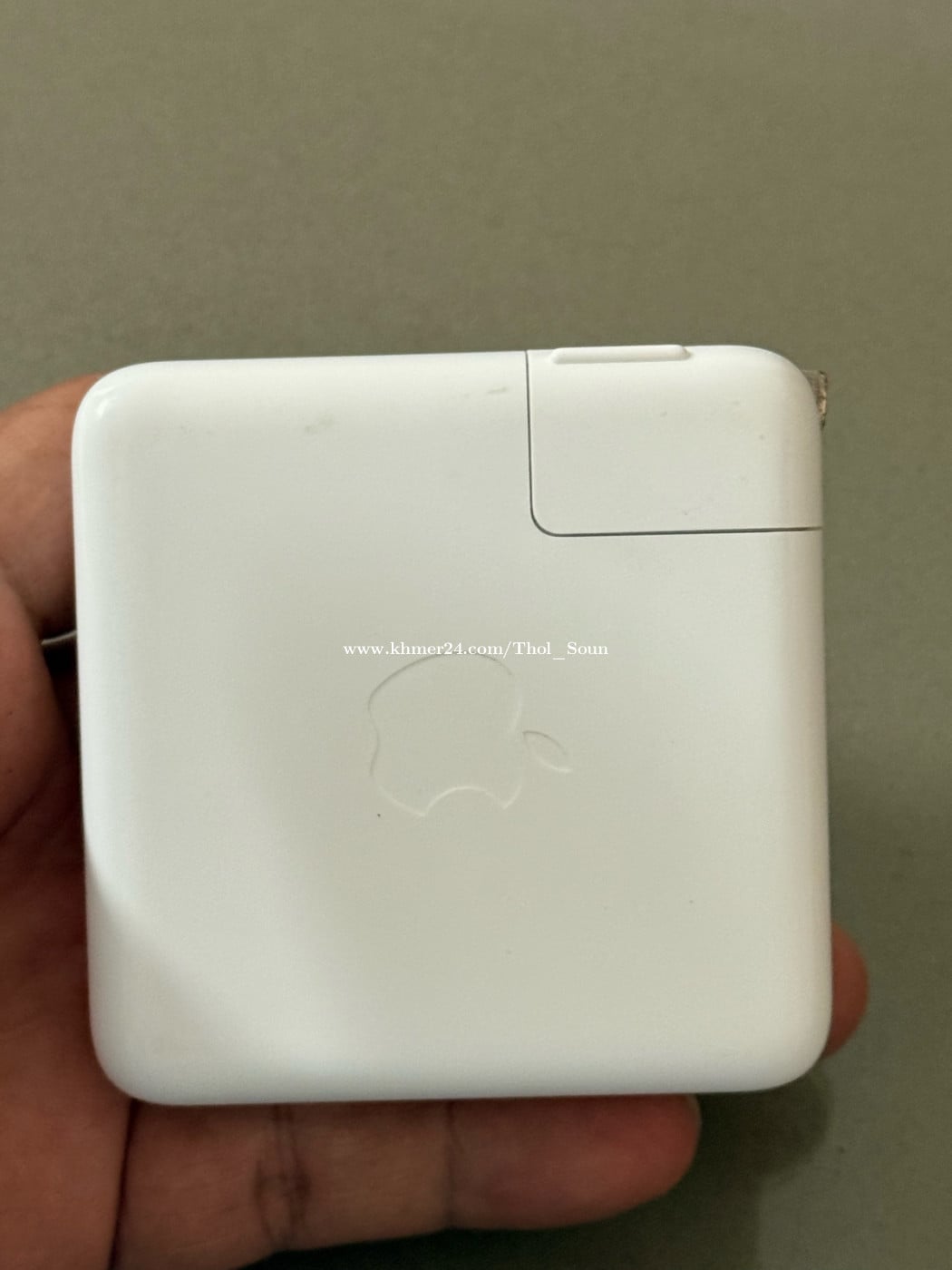 ដុំសាកស៊ីនសម្រាប់ MacBook Pro 67W មានលេខ serial number ពេលសាកជាមួយ MacBook គឺបង្ហាញលេខ serial number និងប្រាប់ពីផលិតផលរបស់ Apple ខ្សែក្រណាត់+ដុំលក់តែ 50$