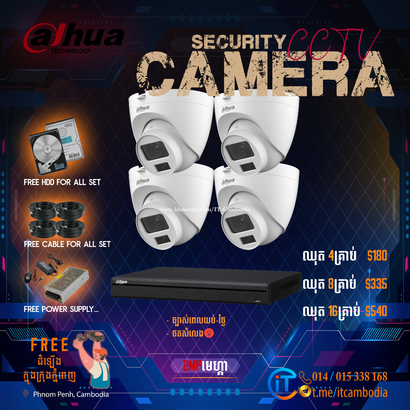 អាយធី-ខេមបូឌា មានផ្គត់ផ្គង់ និងដំឡើងកាំមេរ៉ាសុវត្ថិភាព ជាច្រើនប្រភេទ💯✅ ផលិតផល 𝗢𝗿𝗶𝗴𝗶𝗻𝗮𝗹 សុទ្ធគុណភាព 𝟏𝟎𝟎% និងជាប្រេនសុទ្ធរបស់ក្រុមហ៊ុន ប្រើប្រាស់បានយូរឆ្នាំ គ្រប់ឈុតគ្រប់តំលៃ មាននៅ 𝗜𝗧-𝗖𝗮𝗺𝗯𝗼𝗱𝗶𝗮 ◎ 𝙁𝙧𝙚𝙚 𝙄𝙣𝙨𝙩𝙖𝙡𝙡 ◎ ខ្សែ 𝙉𝙚𝙩𝙬𝙤𝙧𝙠 ◎ ខ្សែ 𝙃𝘿𝙈𝙄/𝙑𝙂𝘼 ◎ 𝙋𝙤𝙬𝙚𝙧 𝙎𝙪𝙥𝙥𝙡𝙮 (ដុំភ្លើងរួម) ◎ 𝙃𝙖𝙧𝙙 𝘿𝙞𝙨𝙠 (𝙃𝘿𝘿 អង្គផ្ទុកទិន្ន័យ) ◎ ខ្សែកាមេរ៉ា មានភ្ជាប់ខ្សែភ្លើង - 𝙍𝙂59 ◎ ឌុយតំណរូប (𝘽𝙉𝘾) & ឌុយតំណភ្លើង (𝘿𝘾) ◎ ភ្ជាប់ជូន 𝙄𝙋 / 𝘿𝘿𝙉𝙎/𝘾𝙡𝙤𝙪𝙙 𝙍𝙚𝙢𝙤𝙩𝙚 សំរាប់មើលតាមទូរសព្ទ័ ◎ ធានាពីរោងចក្រពេញ 1 ឆ្នាំលើផលិតផល (𝘿𝙑𝙍, 𝙃𝙑𝙍, 𝙓𝙑𝙍, 𝙉𝙑𝙍, 𝘾𝙖𝙢𝙚𝙧𝙖, 𝙃𝘿𝘿) សំរាប់ដុំភ្លើងរយៈពេល 3 ខែ និង 𝙁𝙧𝙚𝙚 𝙄𝙣𝙨𝙩𝙖𝙡𝙡 ក្នុងភ្នំពេញ📍 🛠🔩⚙️ ក្រុមការងារ IT-Cambodia ក៏មានសេវាកម្មដំឡើងបាន២៥ ខេត្ត ក្រុង❗️ ☎️ ទំនាក់ទំនង 𝗖𝗲𝗹𝗹𝗰𝗮𝗿𝗱 𝟬𝟭𝟰 𝟯𝟯𝟴 𝟭𝟲𝟴 / 𝗦𝗺𝗮𝗿𝘁 𝟬𝟭𝟱 𝟯𝟯𝟴 𝟭𝟲𝟴 📩 𝗧𝗲𝗹𝗲𝗴𝗿𝗮𝗺 𝗖𝗵𝗮𝘁: +𝟴𝟱𝟱𝟭𝟰𝟯𝟯𝟴𝟭𝟲𝟴 / t.me/ITCambodia