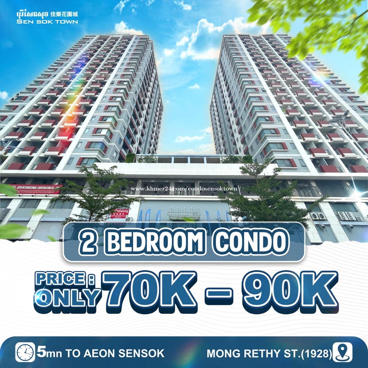 🔥 HOT SELLING! SEN SOK TOWN🔥 – 2BR/LARGE UNIT 💰 Special Price: $70,000 - $98,800 – Ready to Move In ✨Prime Sen Sok Area (5 mins to AEON 2) ✨Spacious Living: 65sqm - 99sqm ✨Incredible Value: Best Price in the District! 🔥High Living & Rental Value: ✨High demand area near International Schools & AEON 2 ✨Full Facilities: – Sky Pool 🏊♂️ – Sauna 🧖♀️ & Gym 🏋️ Perfect for Family Living or Rental Income ☎️Telegram for Visit:015841xxxClick To Call @karrysing