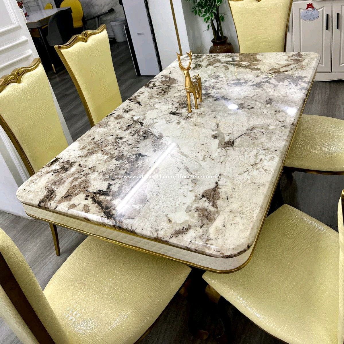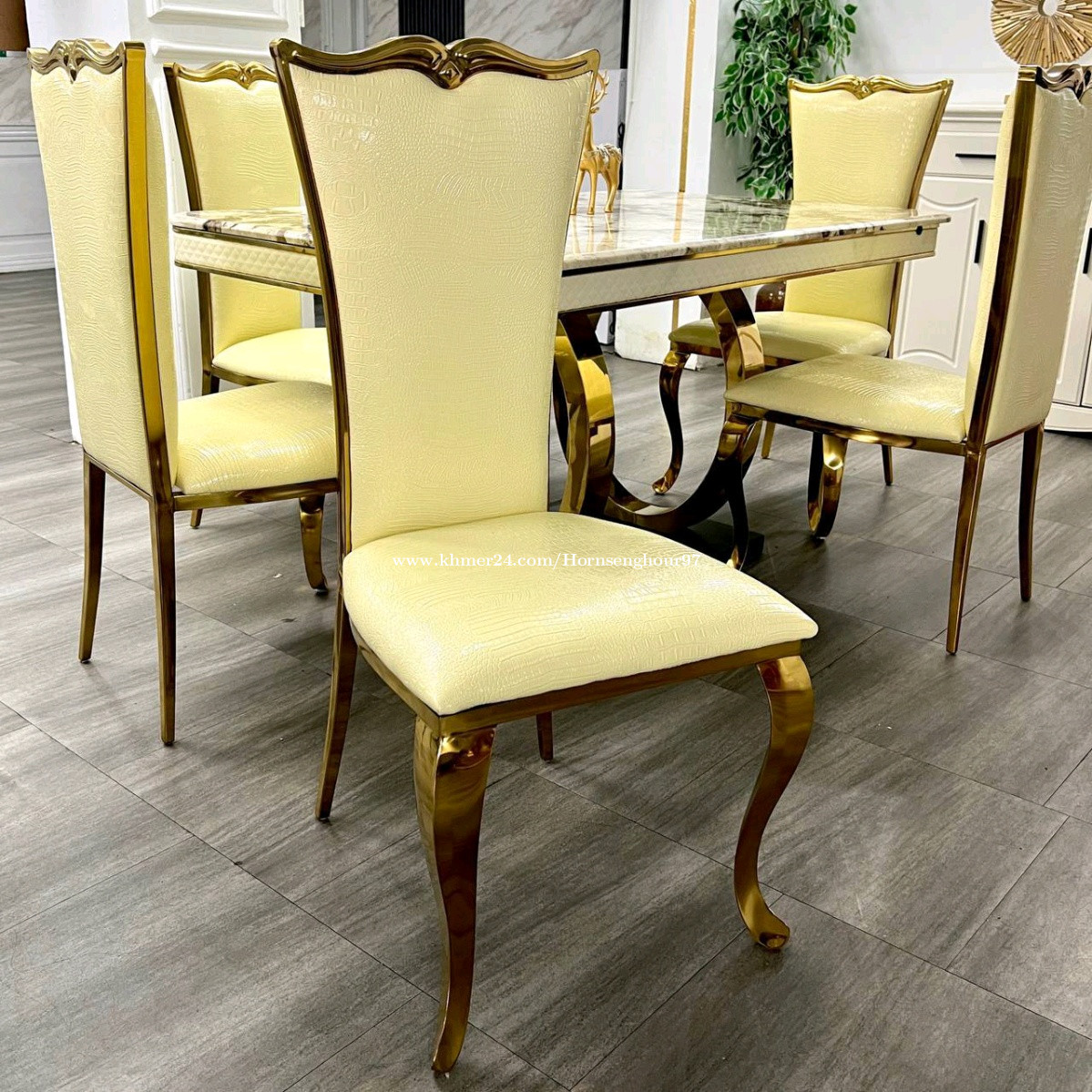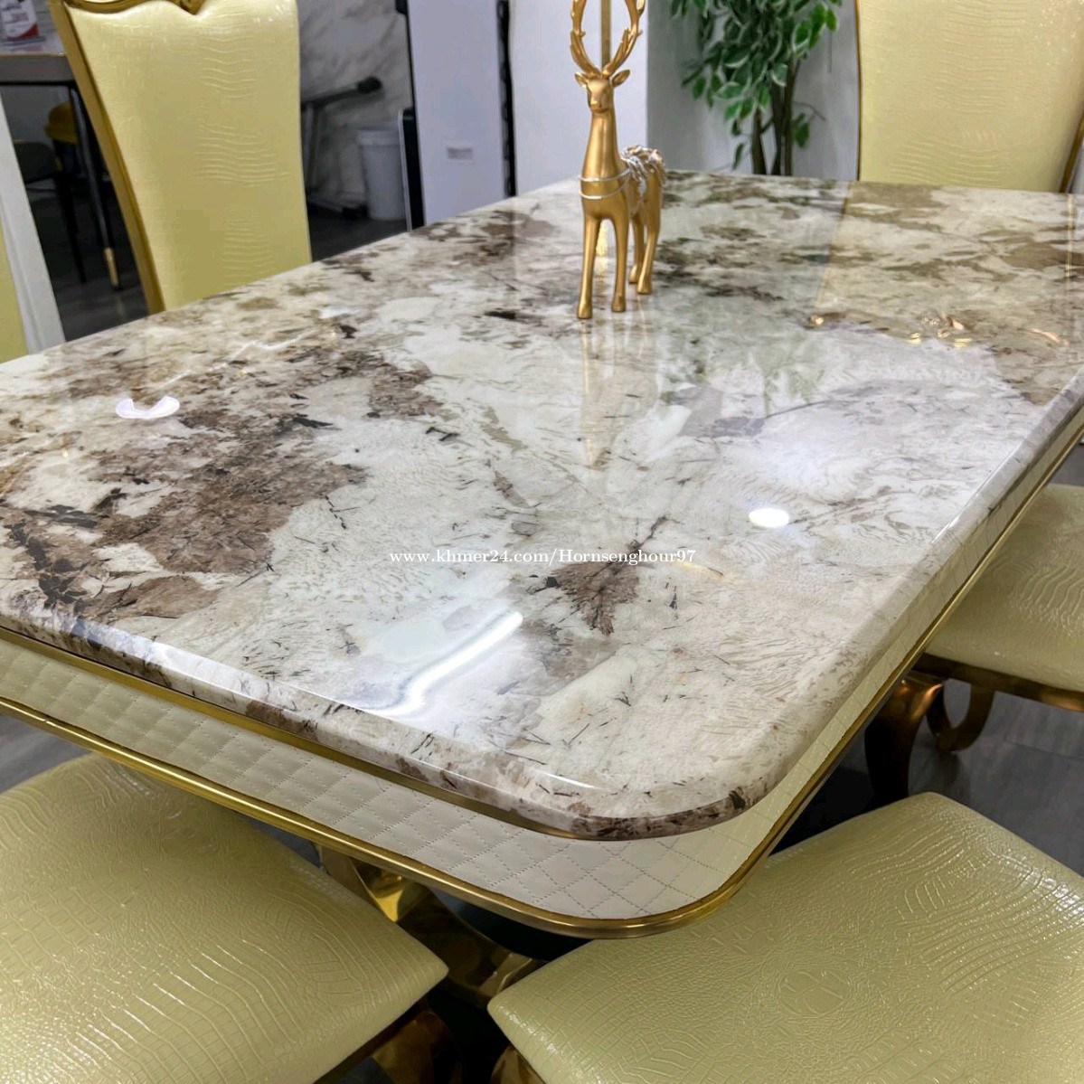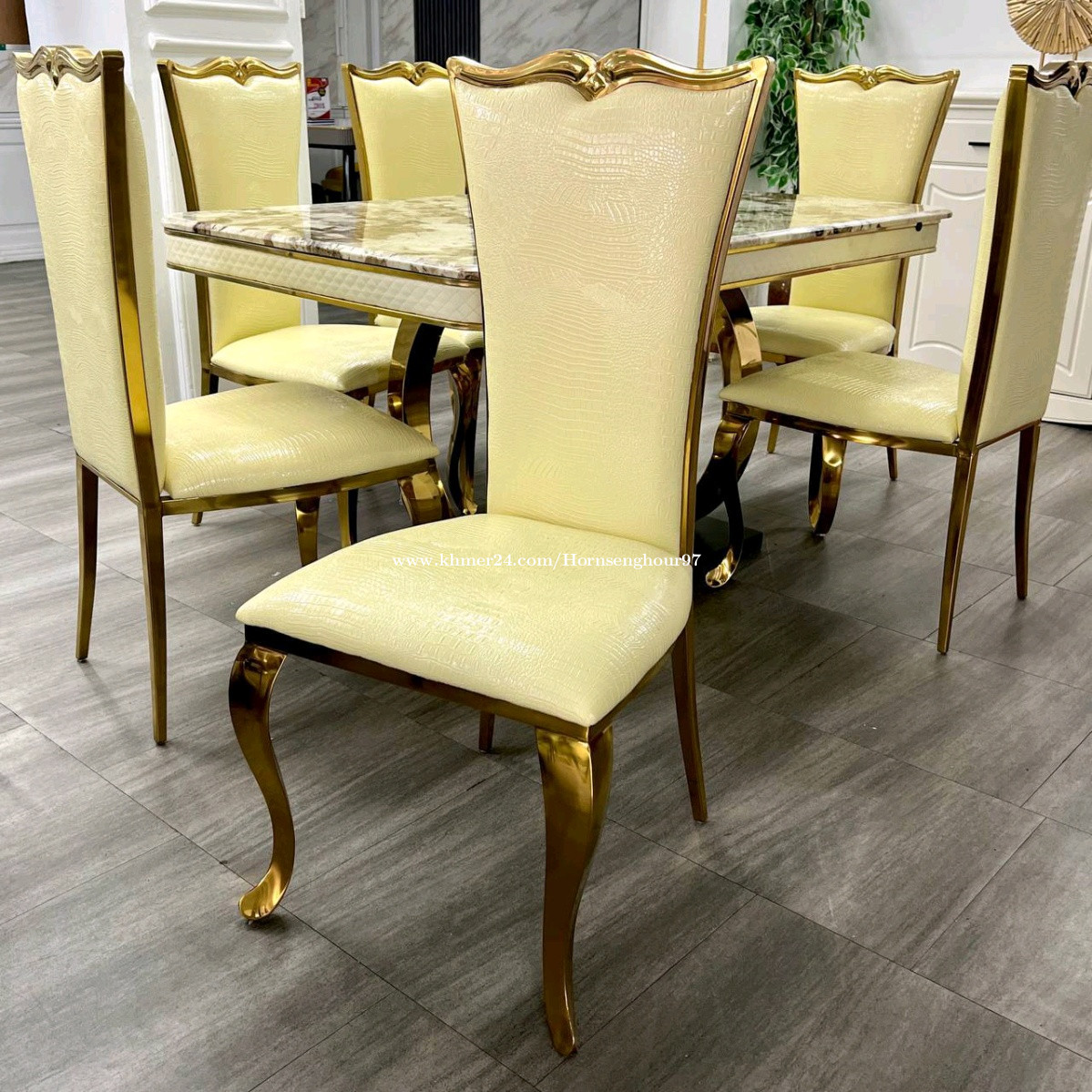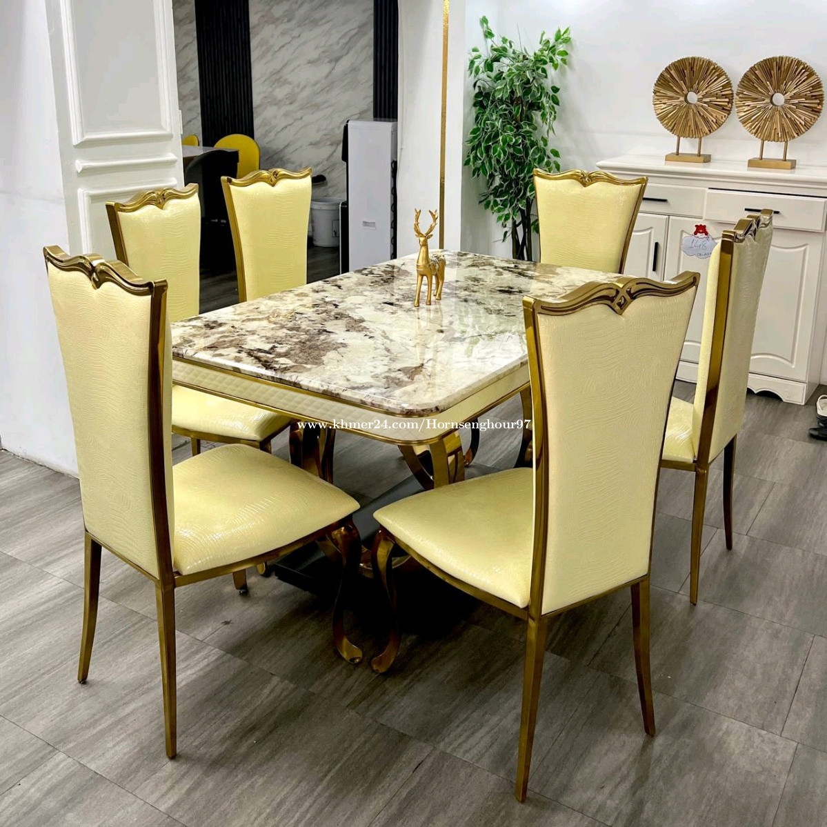 Beautiful Dining set with six chairs available in stock -Table size 1.50*0.9*H0.8Cm -Wooden: Rubber woods -Price set 940$ -Free Install -Free delivery in phnom penh -Payment after delivery complete -Interested kindly contact Telegram:@SenghourFurniture168