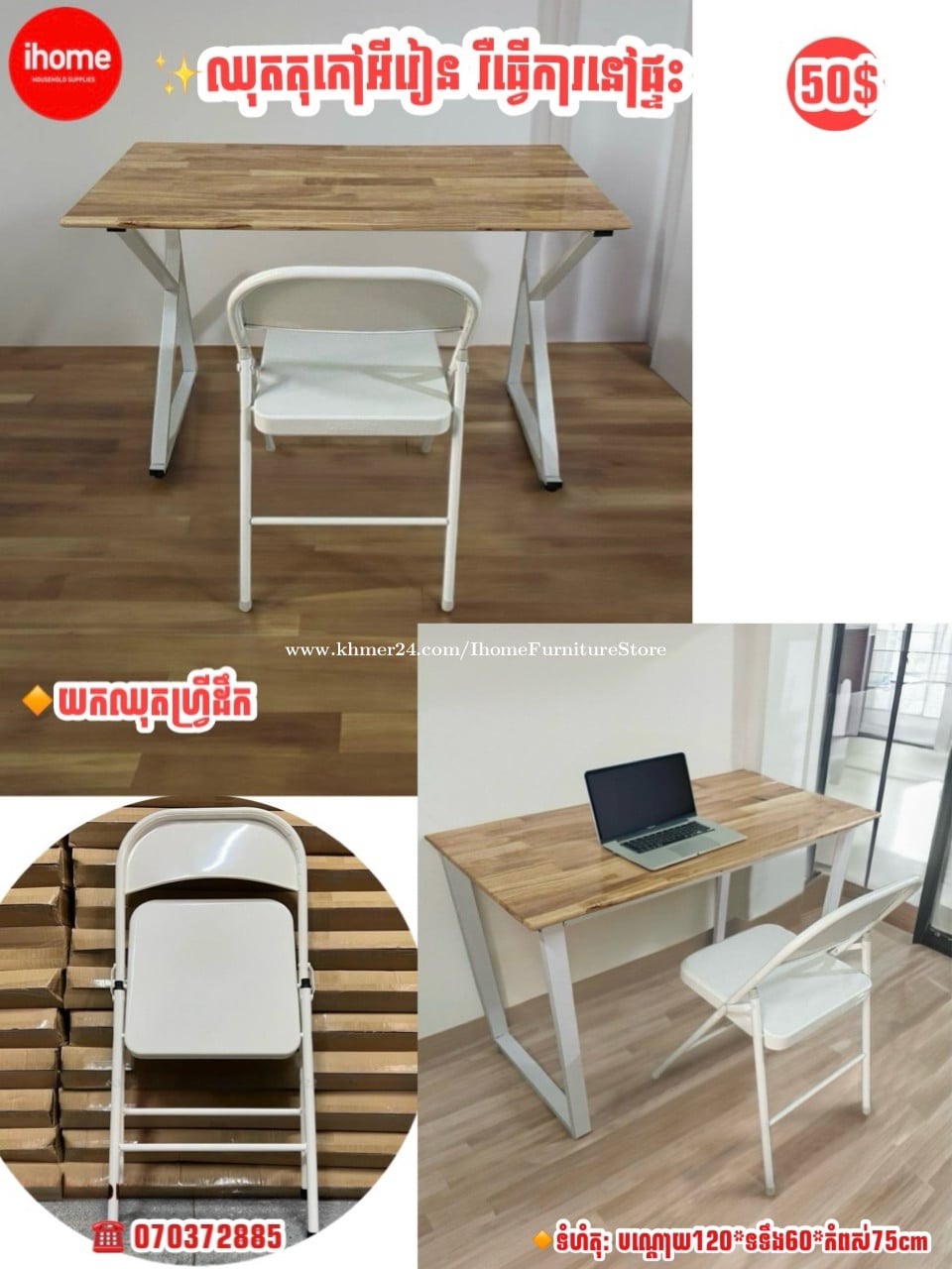🔸តុធ្វើការ រឺរៀននៅផ្ទះ ✔️ជើងដែកមាំល្អ ប្រភេទឈើកៅស៊ូធន់និងទឹក សាច់ហាប់មាំល្អ ✔️ហ្វ្រីដឹកជូន 🔥ទិញភ្លាម បានភ្លាម មានក្នុងស្ដុកស្រាប់ 👉ទំនាក់ទំនង៖ 070372xxxClick To Call 👉 ឆាតចូលតេឡេក្រាមអ្នកលក់: https://t.me/ChomKanha 👉លីងសម្រាប់ចូលគ្រុប​ : https://t.me/ihomefurniture