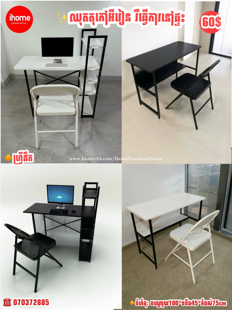 តុ និងឈុតតុកៅអីធ្វើការងារនៅផ្ទះ រឺរៀន