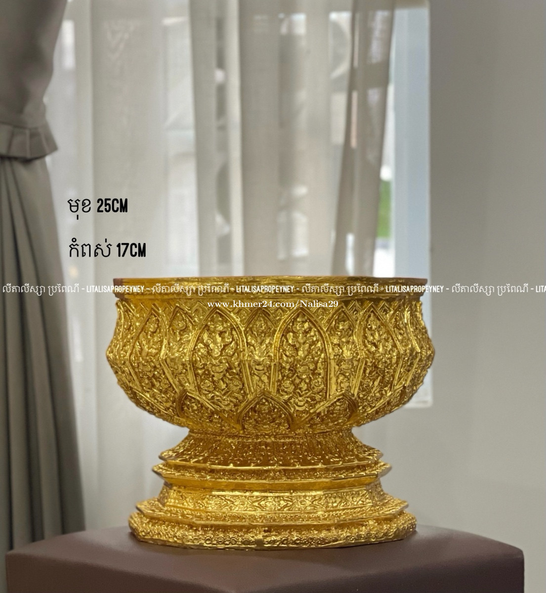 តោក ធ្វើពីស្មាច់បិតសន្លឹកមាស ខ្នាត 25cm តម្លៃពេញ $16 ចុះសល់ $12 📲 015811xxxClick To Call